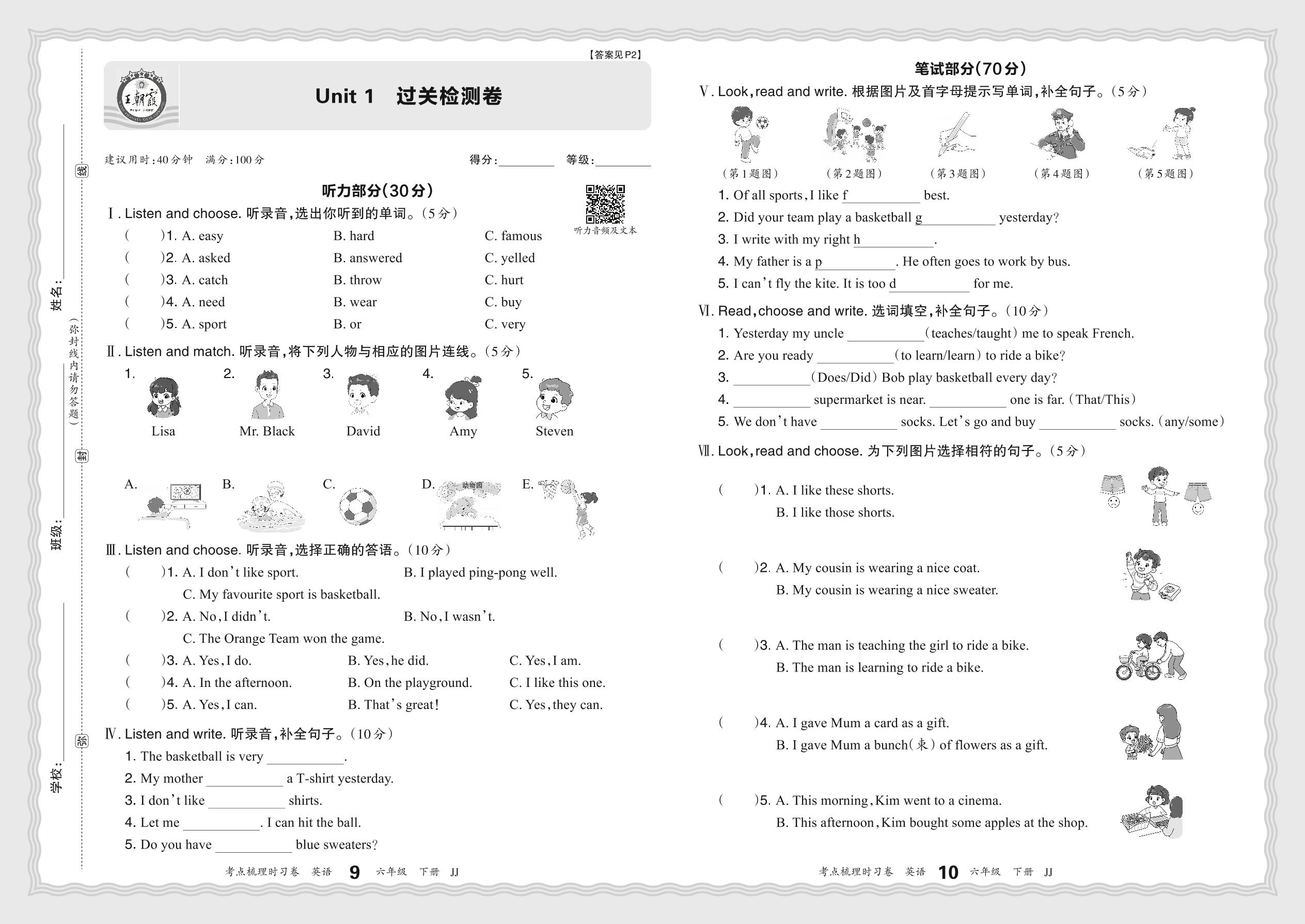 六年级英语冀教版下册单元卷