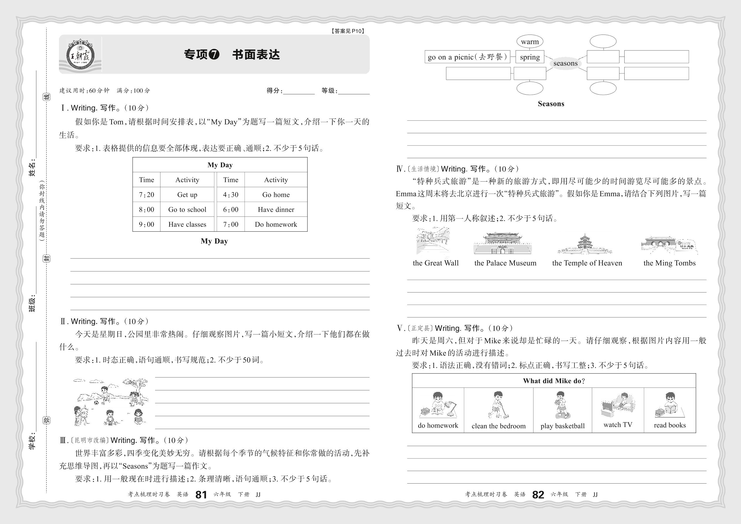2024春下册六年级英语冀教版 期末专项卷KD版·书面表达【7】