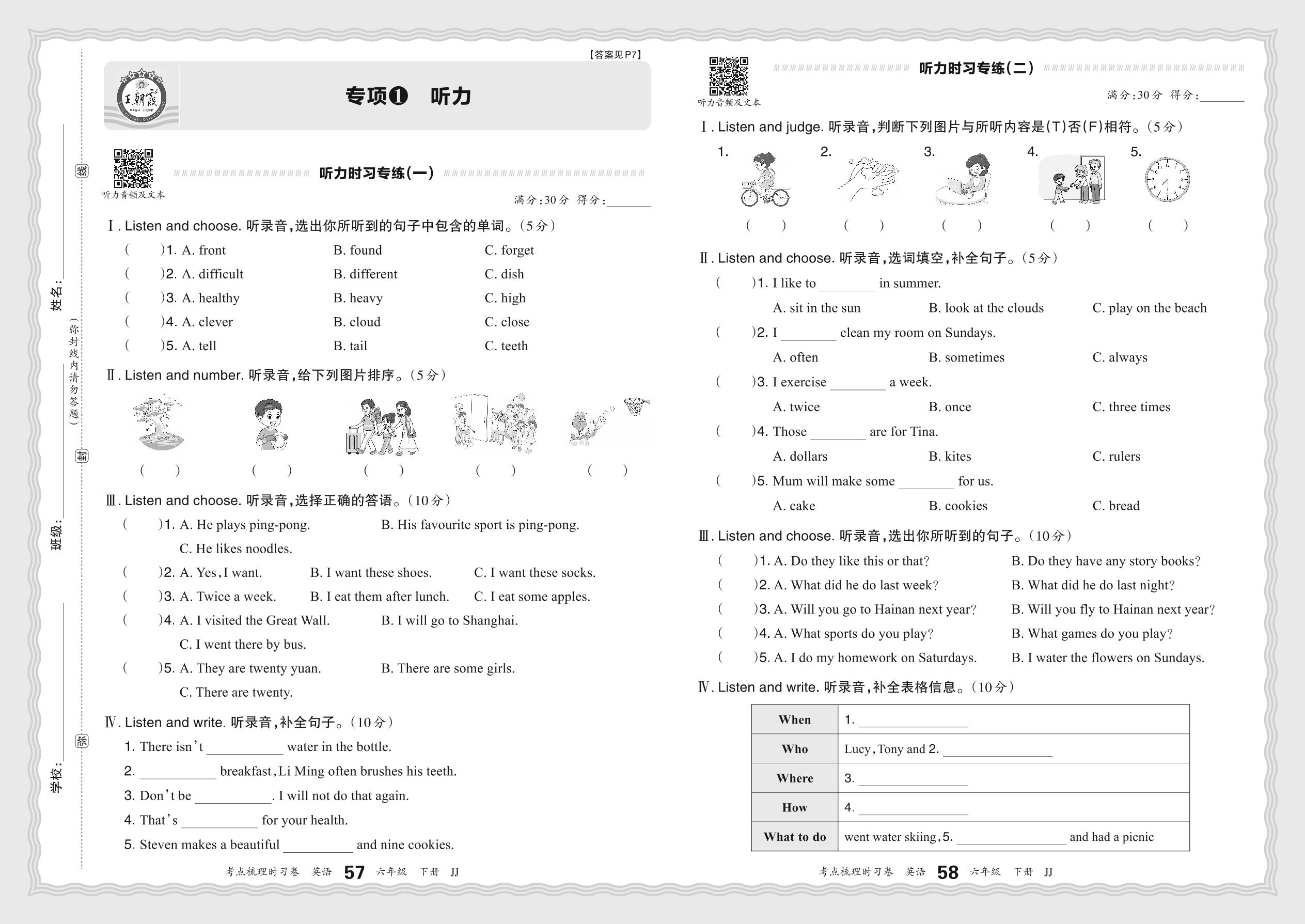 2024春下册六年级英语冀教版 期末专项卷KD版·听力【1】