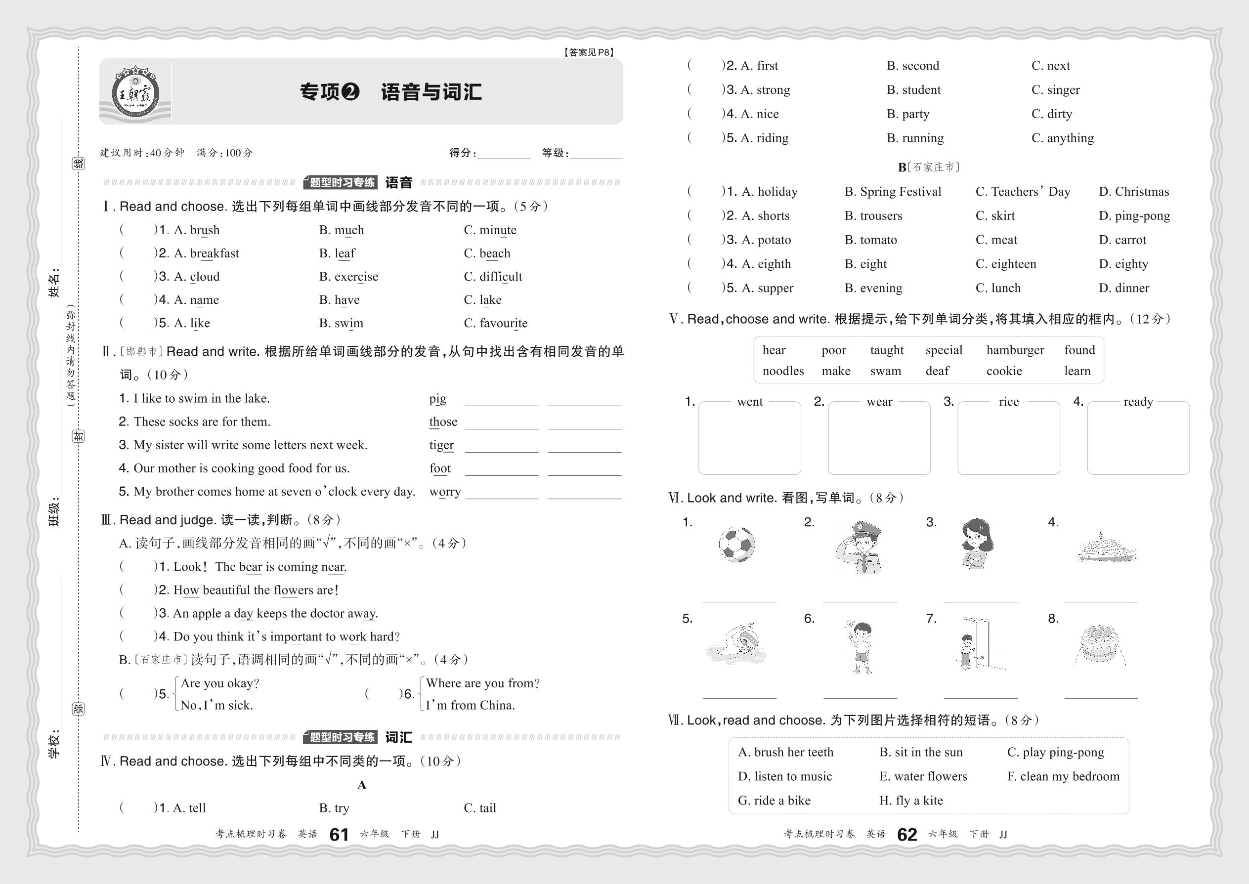2024春下册六年级英语冀教版 期末专项卷KD版·语音与词汇【2】