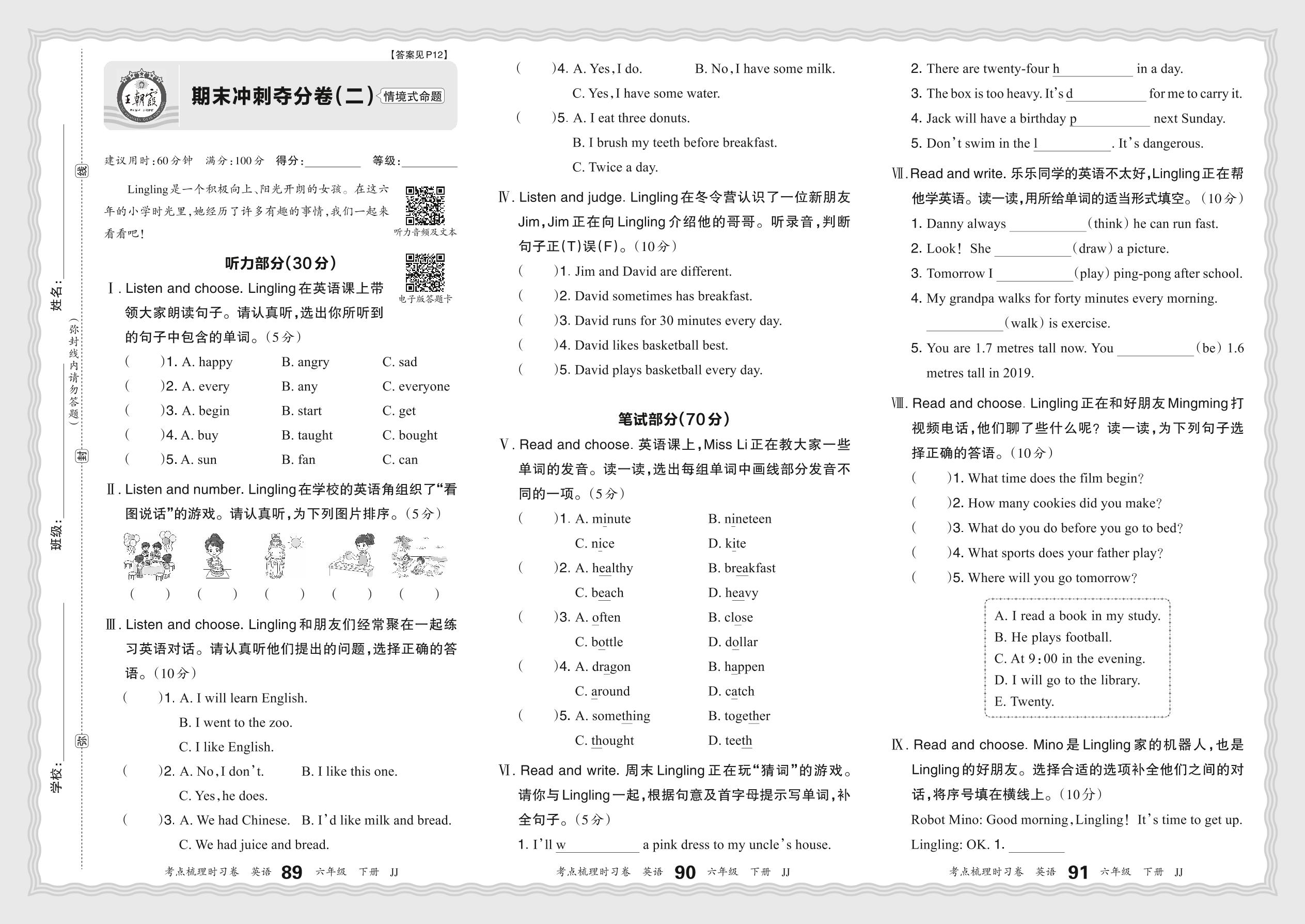 2024春下册六年级英语冀教版 期末冲刺夺分卷(二)