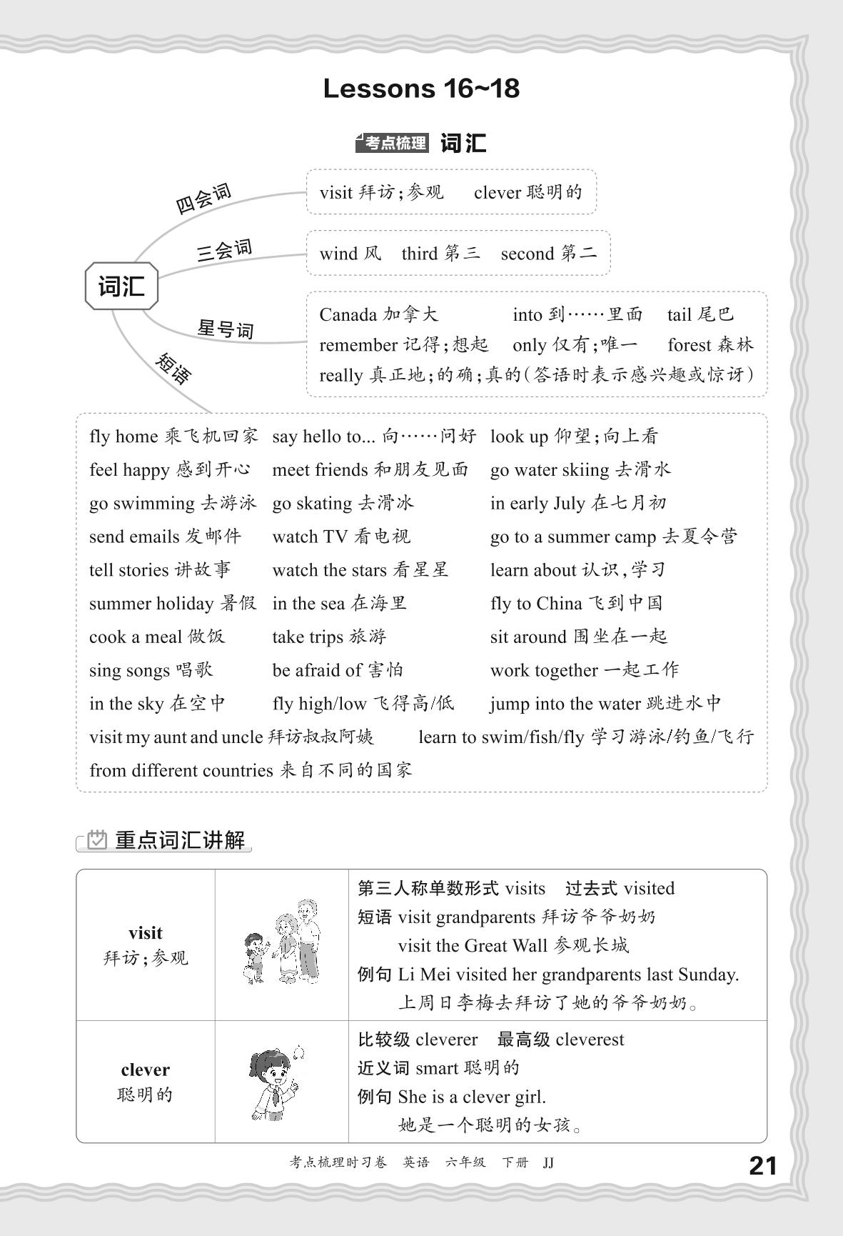 2024春下册六年级英语冀教版 考点梳理手册——Unit 3 Lessons 16~18