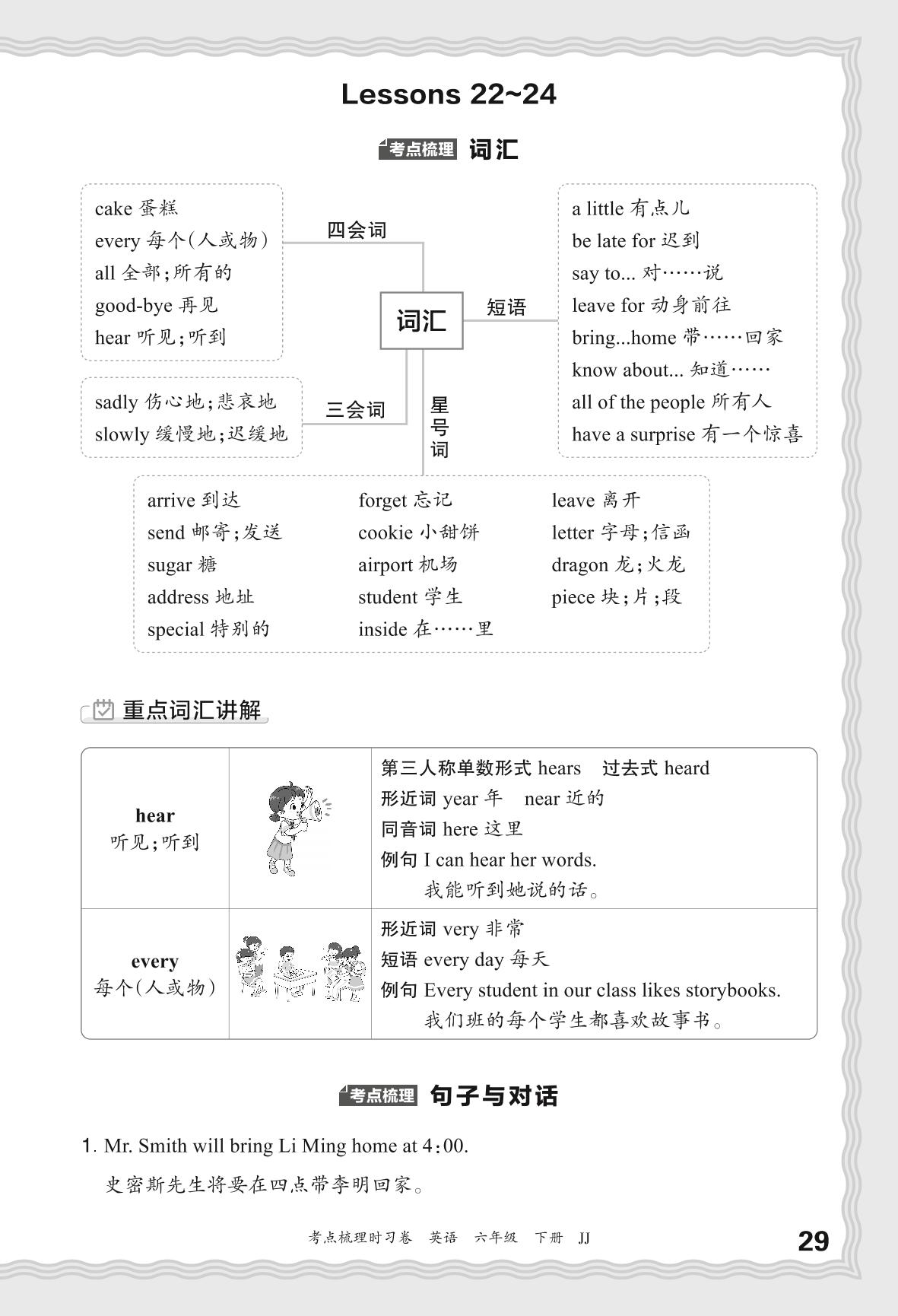 2024春下册六年级英语冀教版 考点梳理手册——Unit 4 Lessons 22~24
