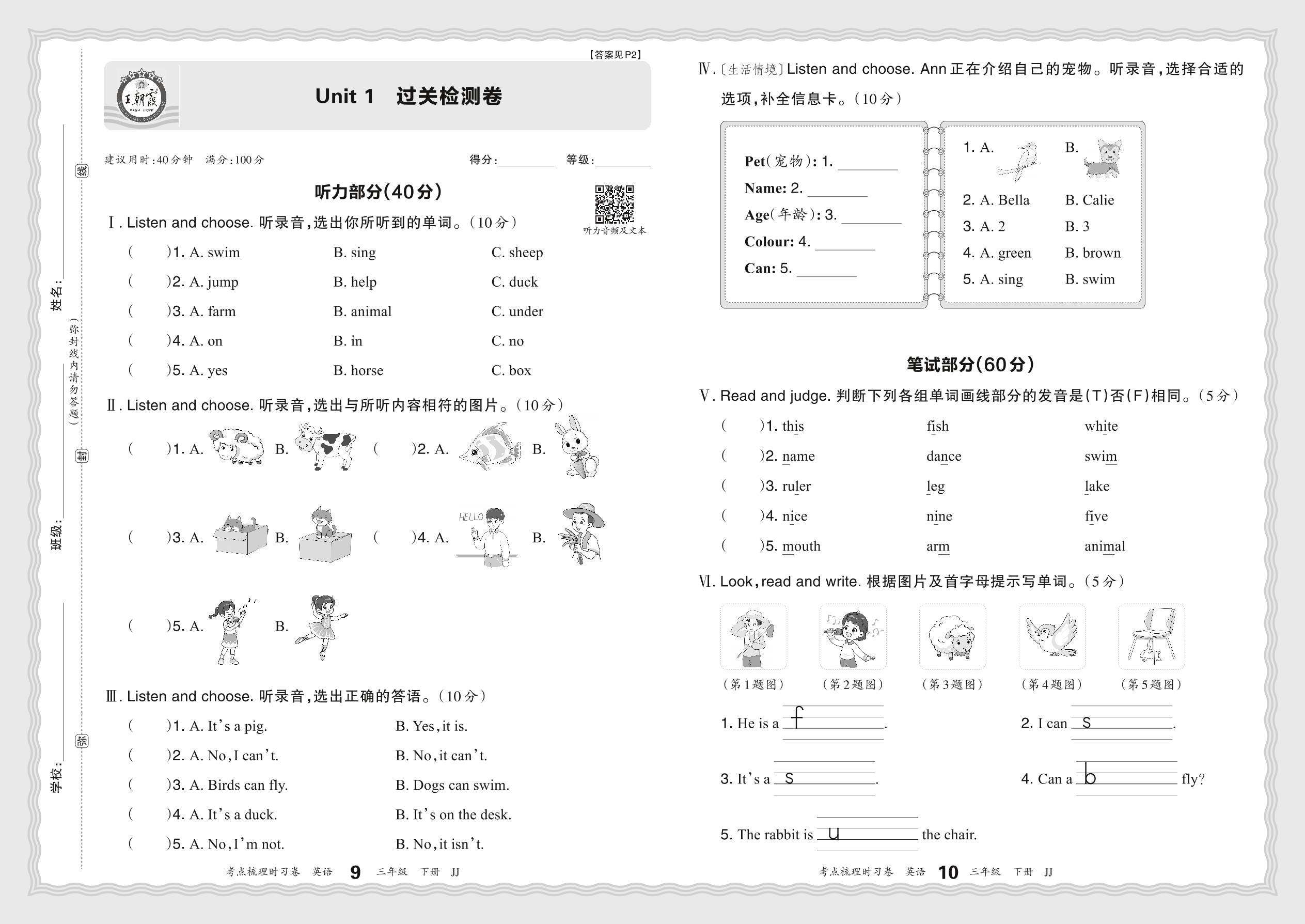 三年级英语冀教版下册单元卷