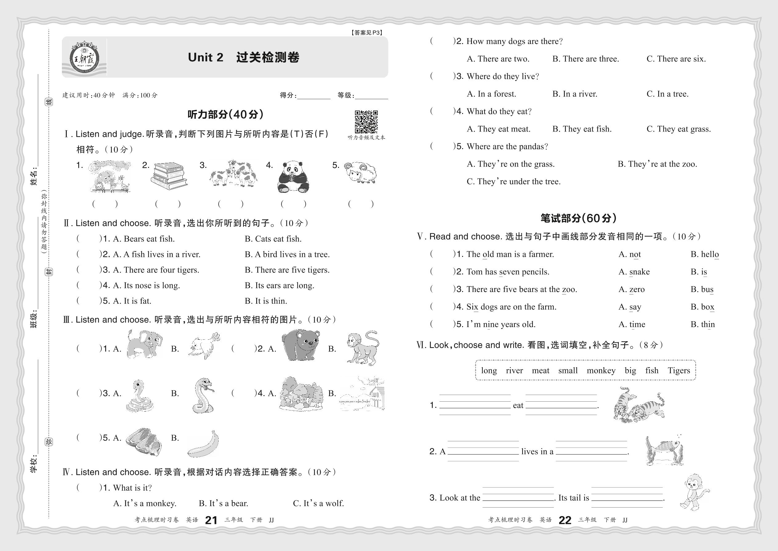 2024春下册三年级英语冀教版 Unit 2 过关检测卷