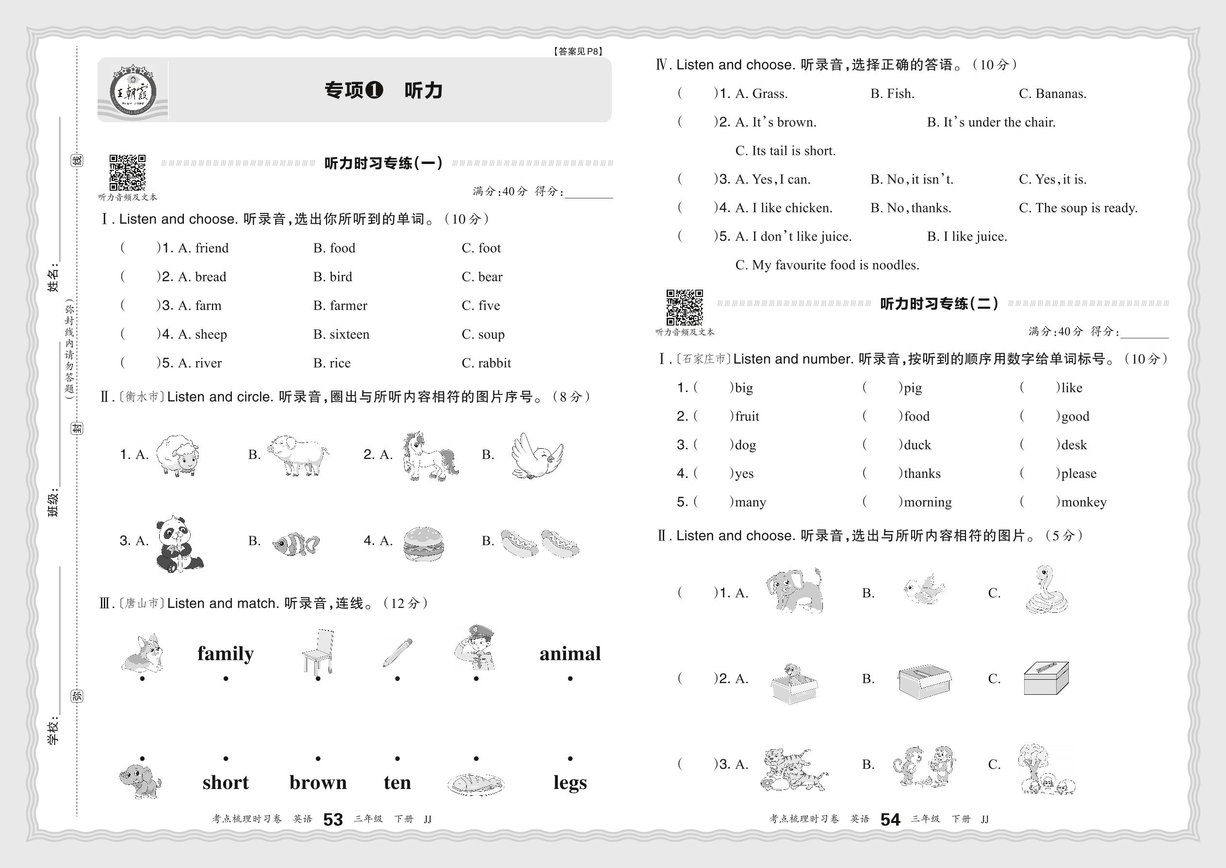2024春下册三年级英语冀教版 期末专项卷KD版·听力【1】