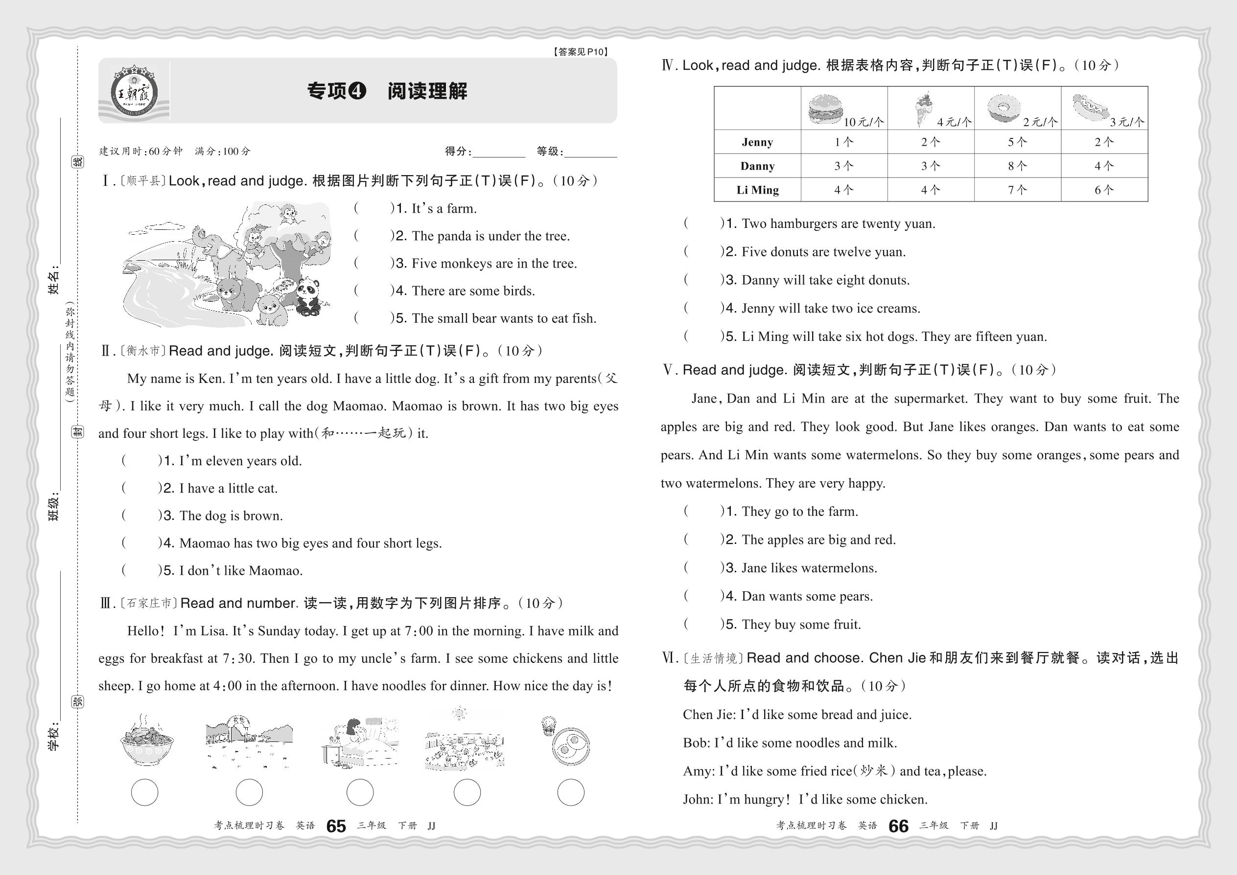 2024春下册三年级英语冀教版 期末专项卷KD版·阅读理解【4】