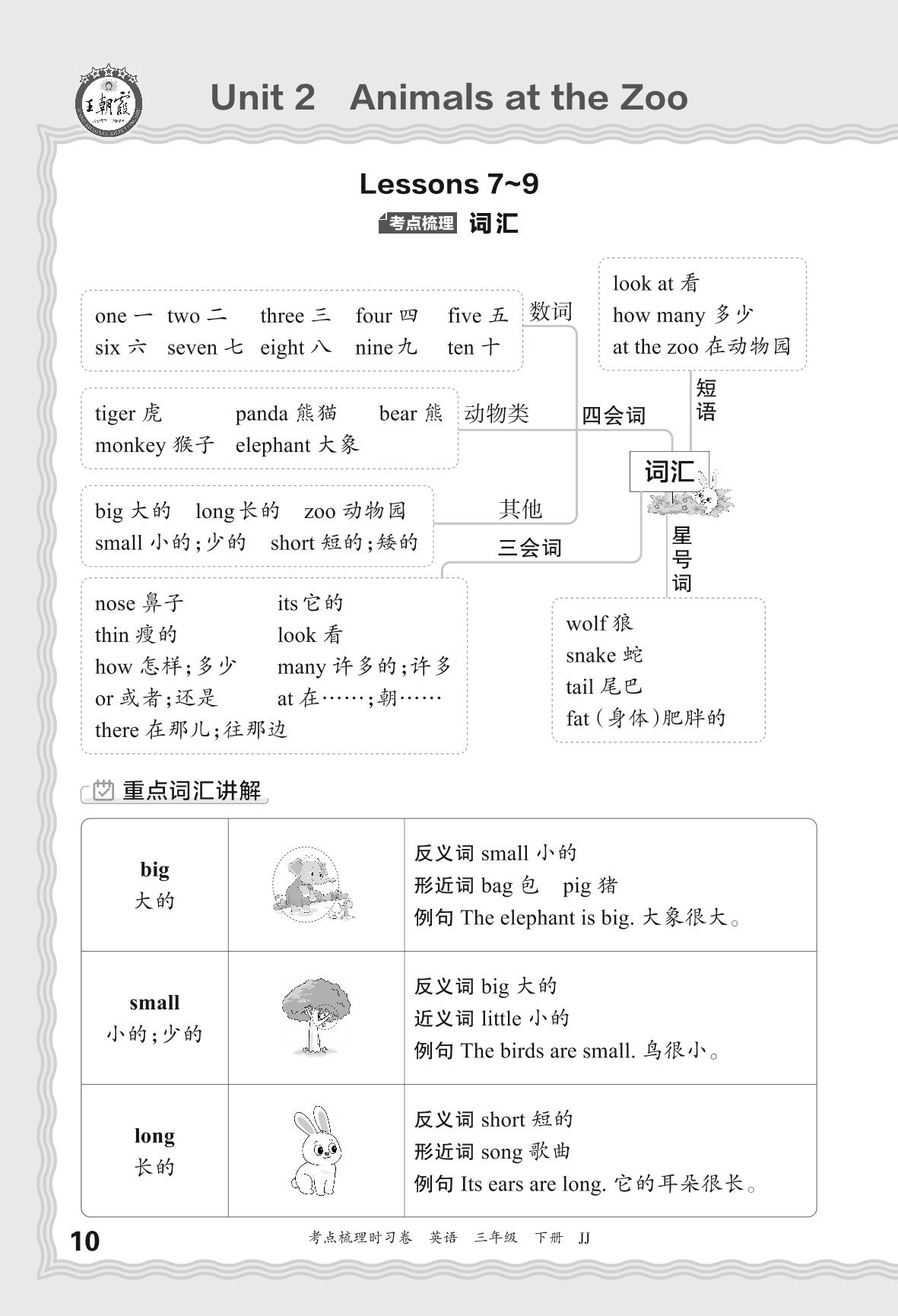 2024春下册三年级英语冀教版 考点梳理手册——Unit 2 Lessons 7~9