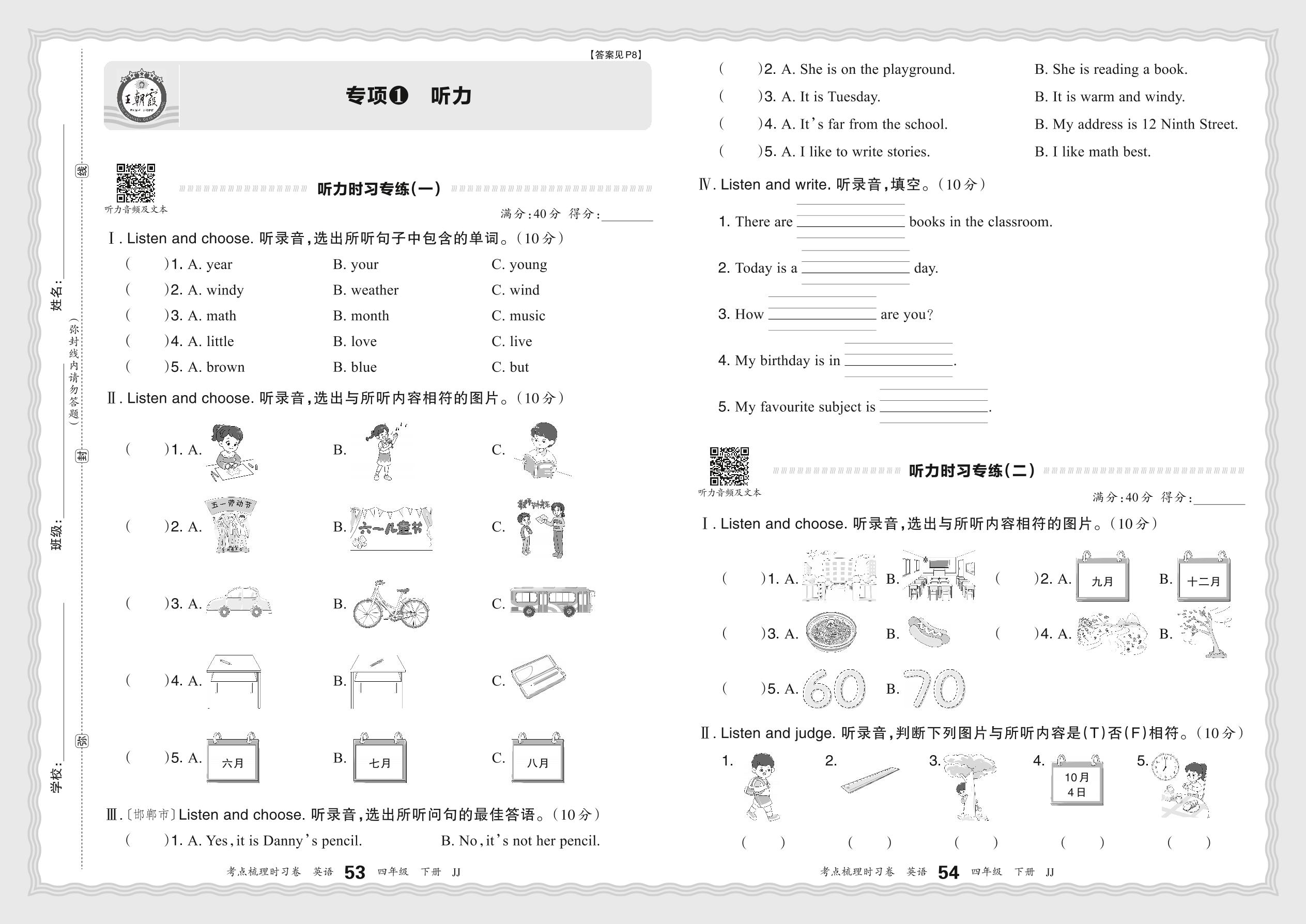 2024春下册四年级英语冀教版 期末专项卷KD版·听力【1】