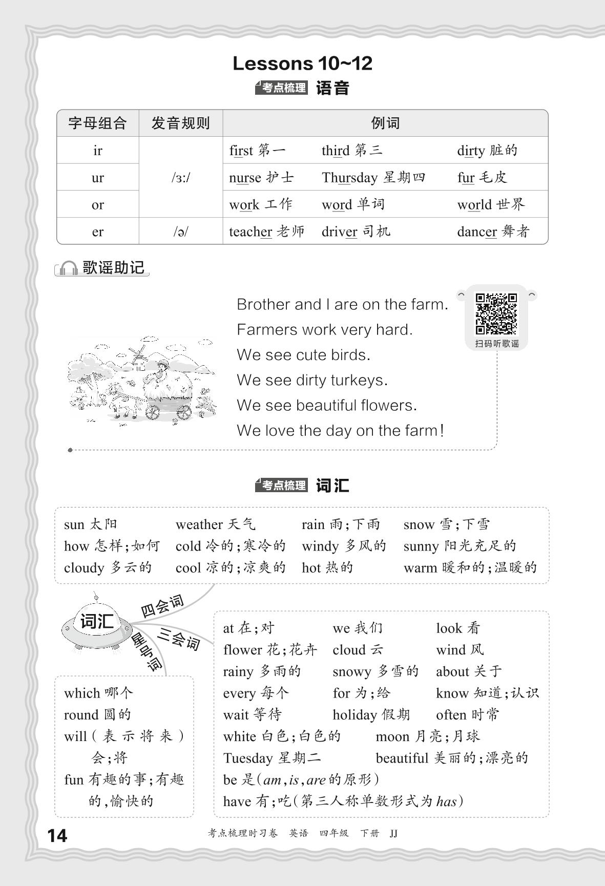 2024春下册四年级英语冀教版 考点梳理手册——Unit 2 Lessons 10~12