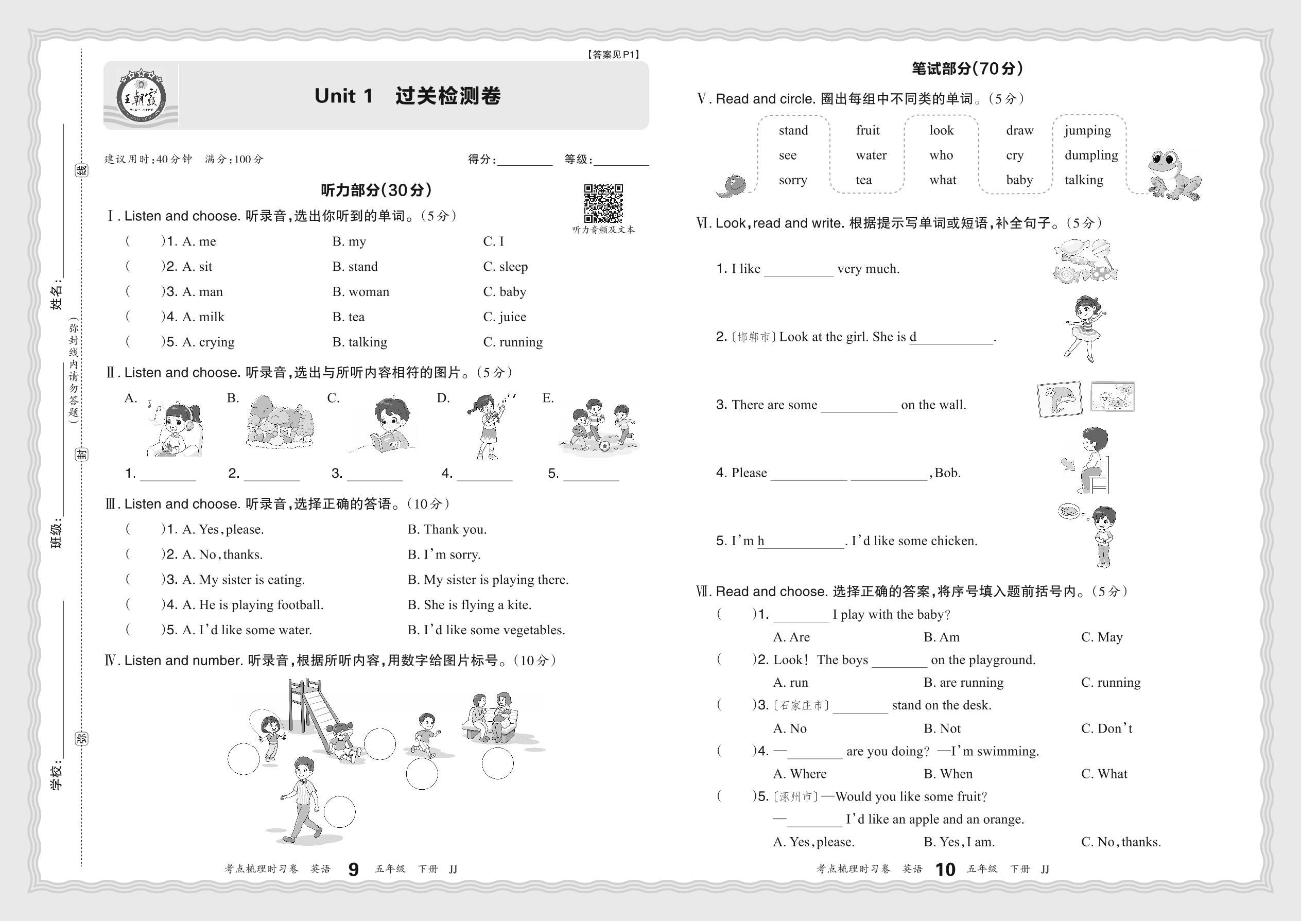 2024春下册五年级英语冀教版 Unit 1 过关检测卷