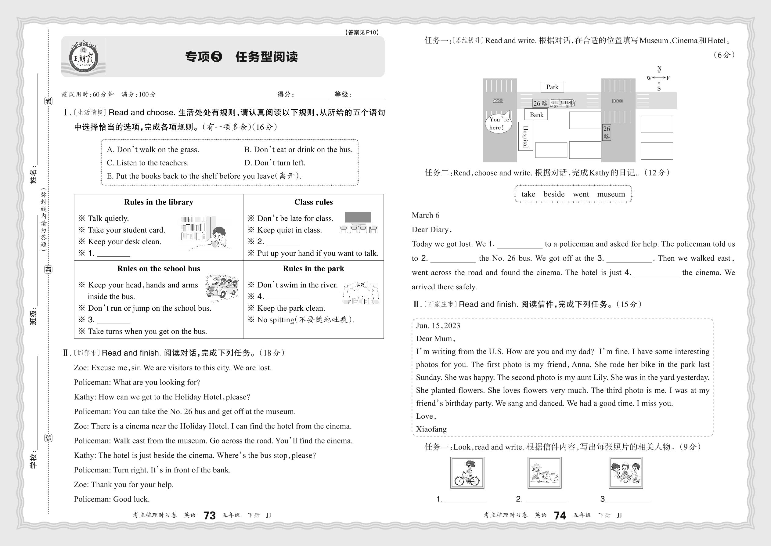 2024春下册五年级英语冀教版 期末专项卷KD版·任务型阅读【5】