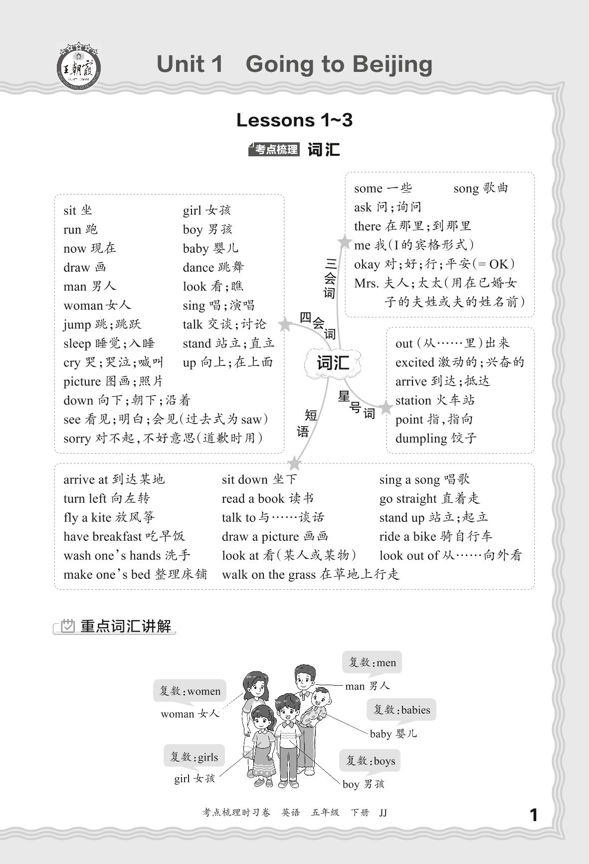 2024春下册五年级英语冀教版 考点梳理手册——Unit 1 Lessons 1~3
