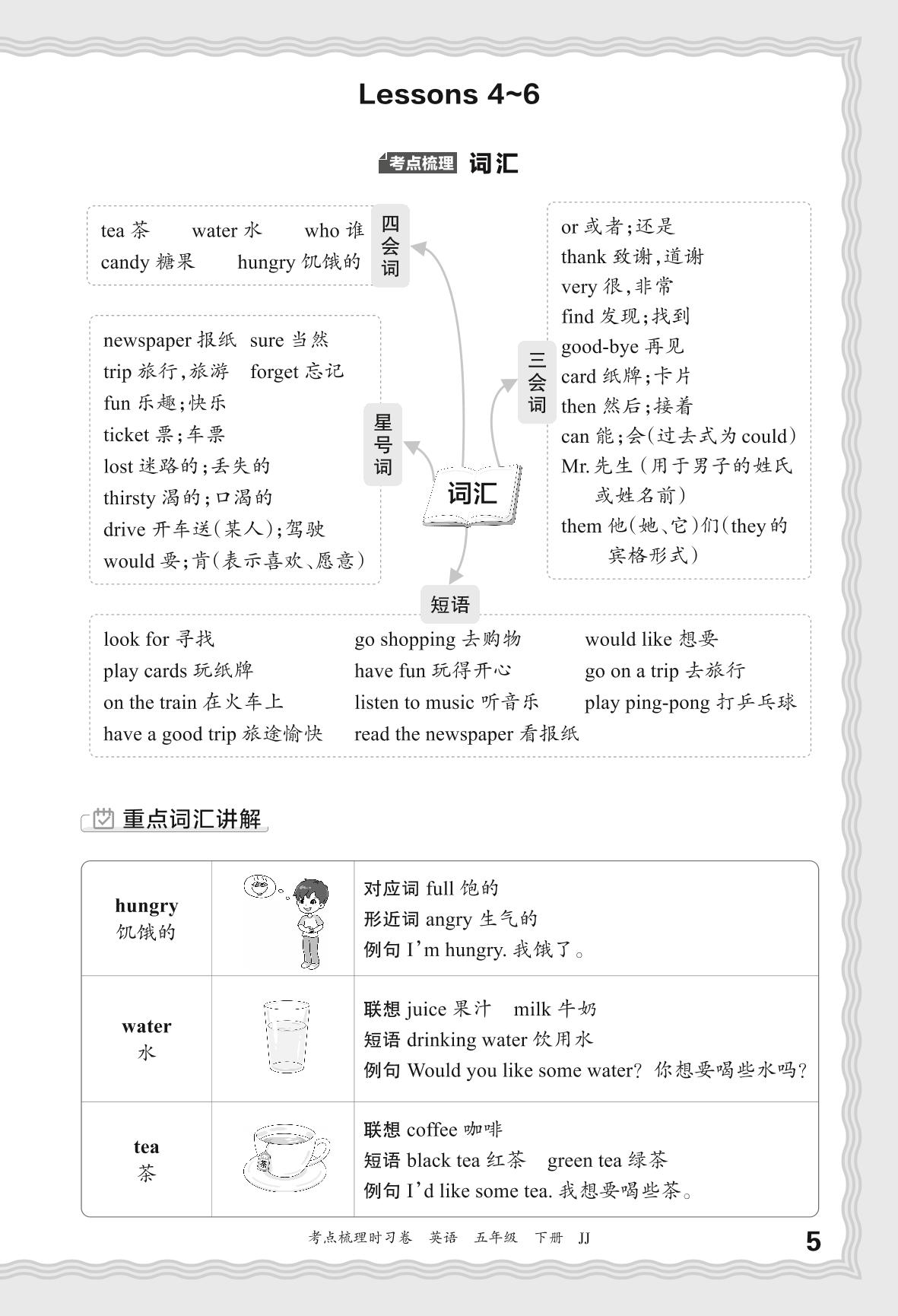 2024春下册五年级英语冀教版 考点梳理手册——Unit 1 Lessons 4~6