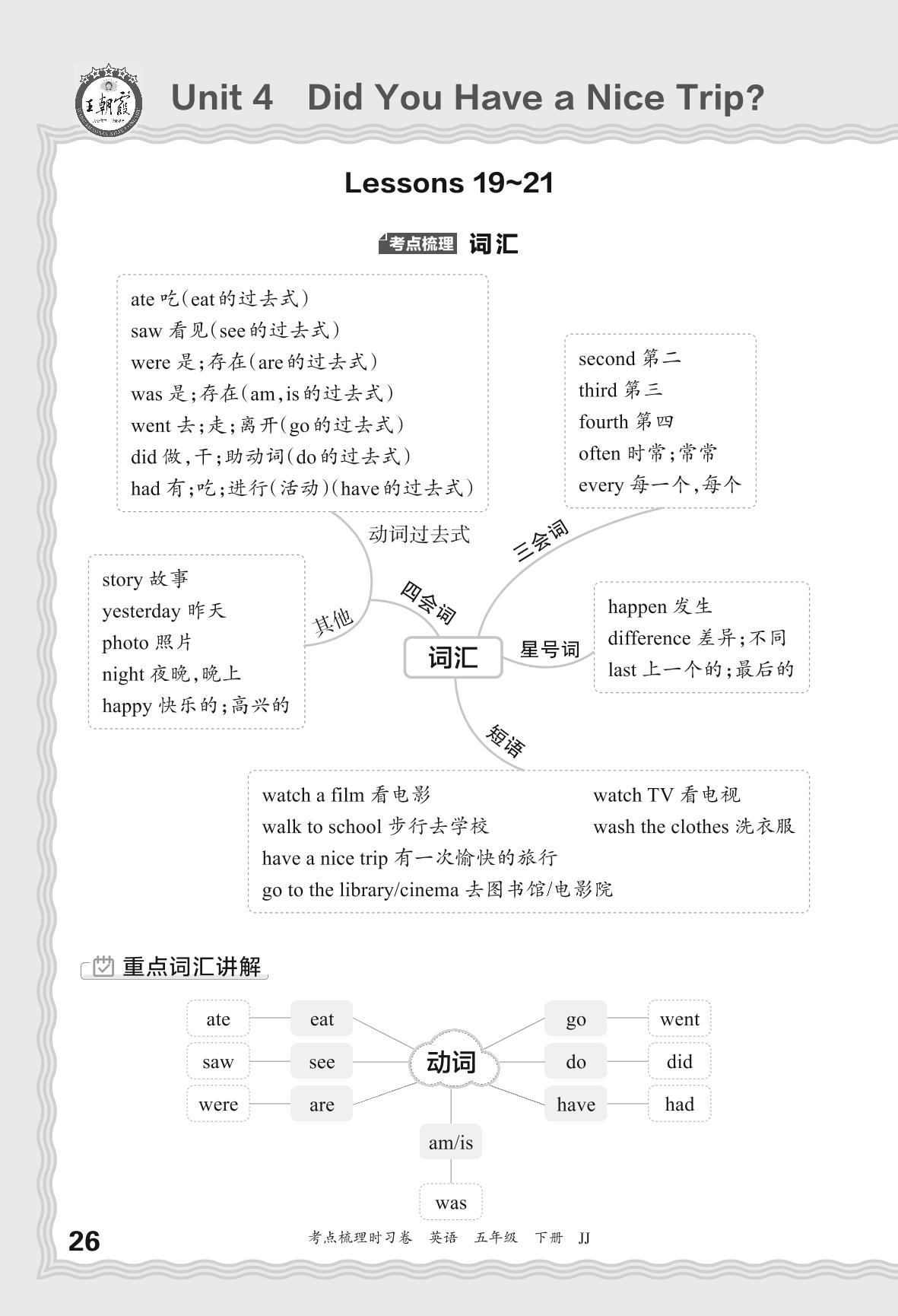 2024春下册五年级英语冀教版 考点梳理手册——Unit 4 Lessons 19~21
