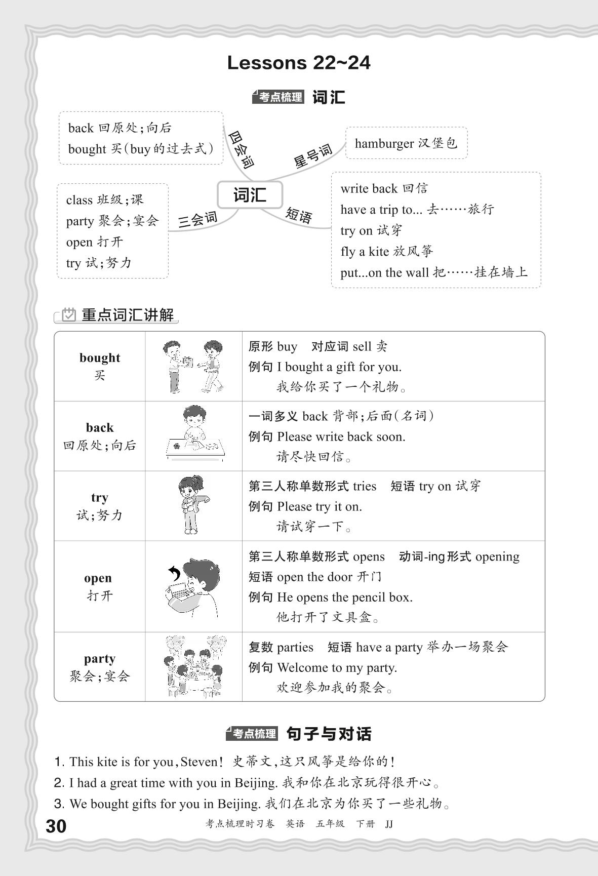 2024春下册五年级英语冀教版 考点梳理手册——Unit 4 Lessons 22~24