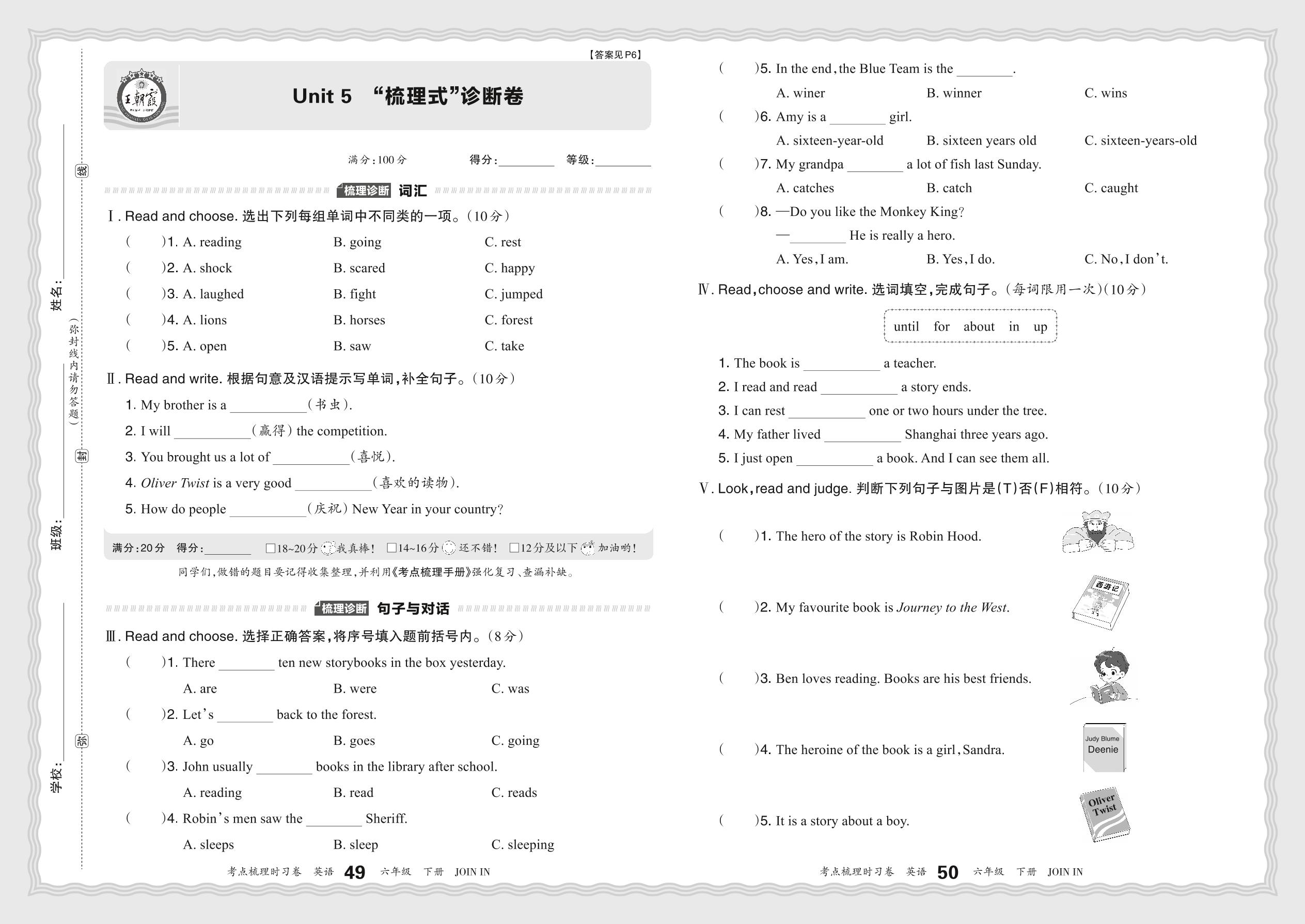 2024春下册六年级英语剑桥版 Unit 5 “梳理式”诊断卷