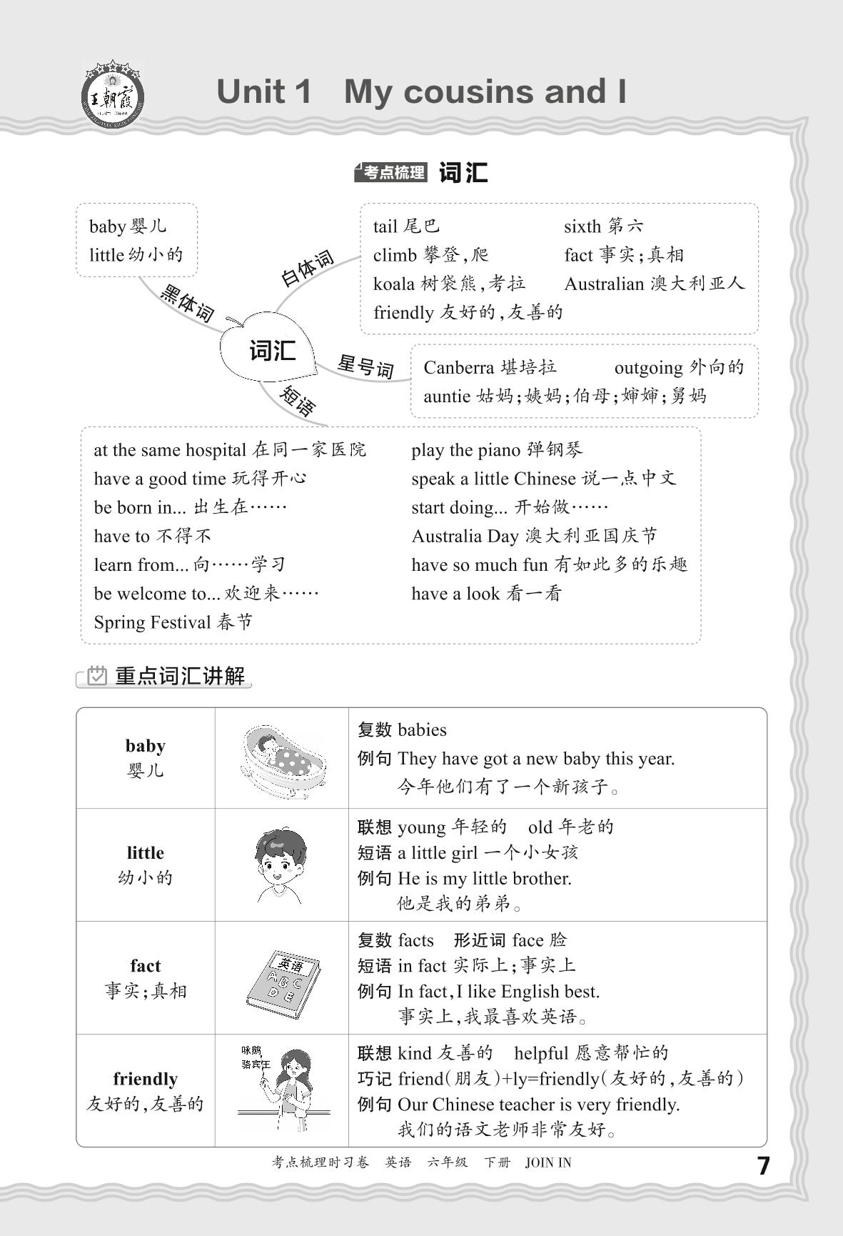 2024春下册六年级英语剑桥版 考点梳理手册——Unit 1 My cousins and I