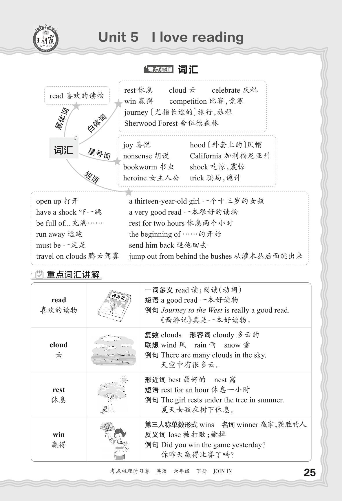 2024春下册六年级英语剑桥版 考点梳理手册——Unit 5 I love reading