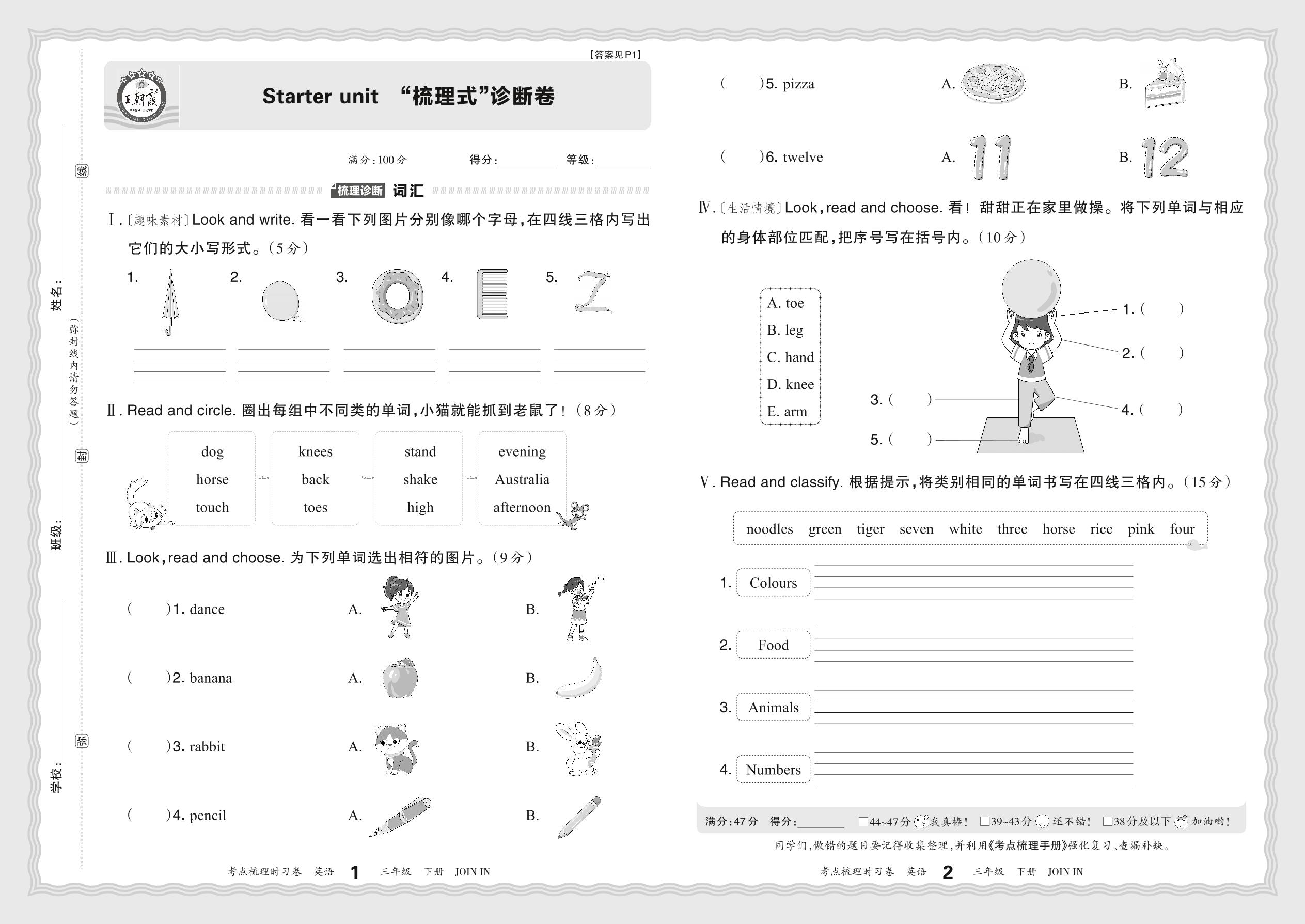 2024春下册三年级英语剑桥版 Starter unit “梳理式”诊断卷