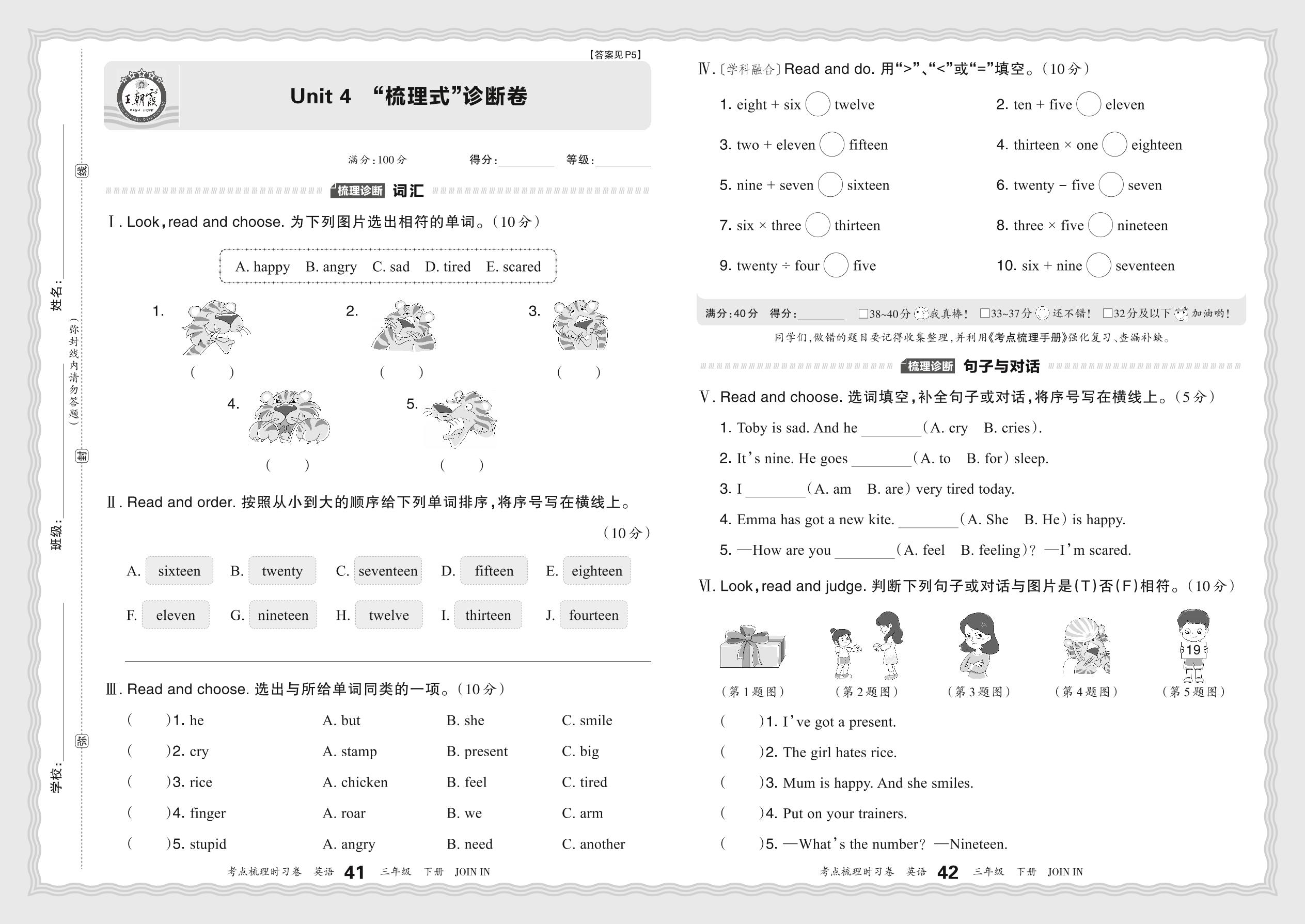 2024春下册三年级英语剑桥版 Unit 4 “梳理式”诊断卷