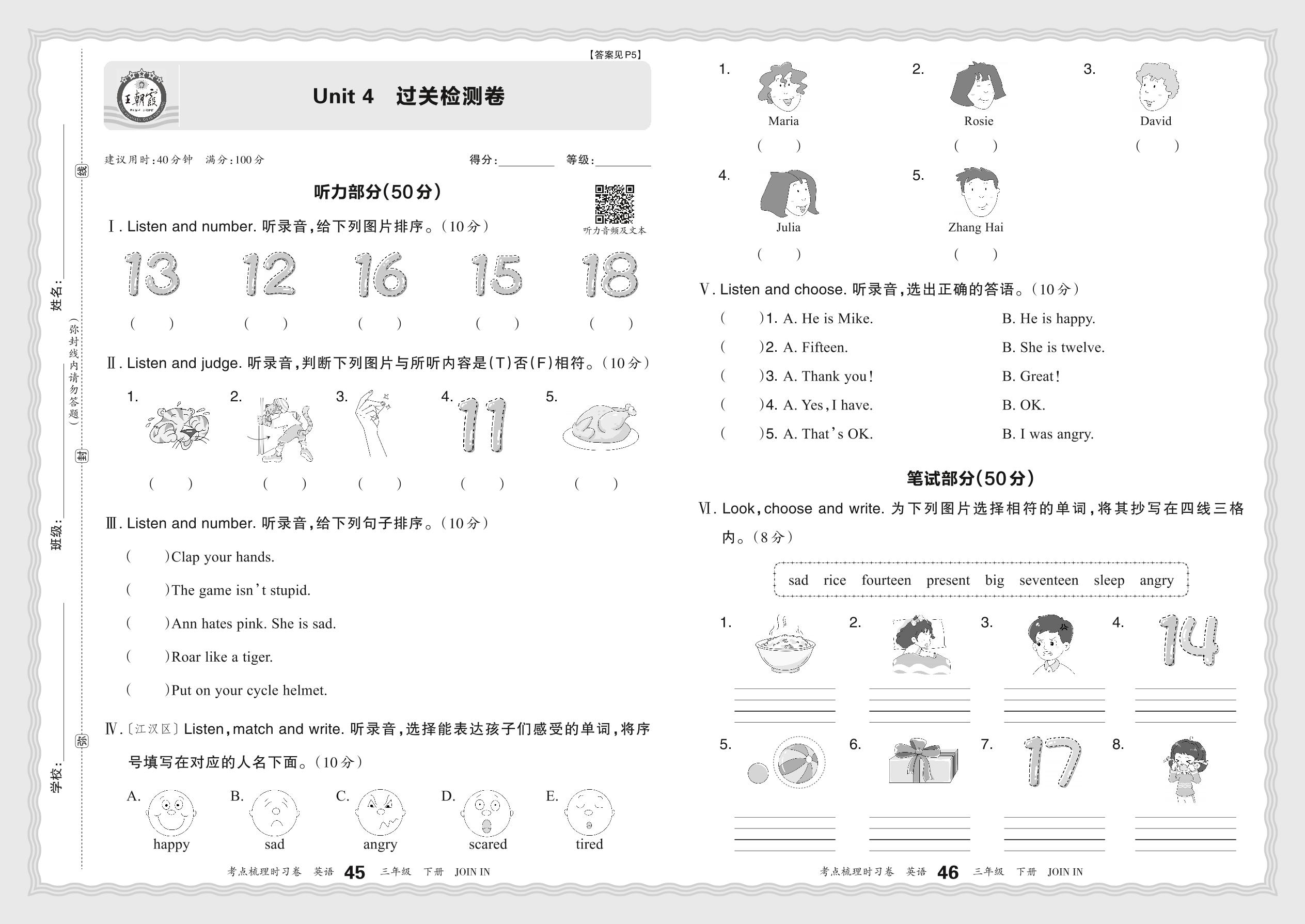 2024春下册三年级英语剑桥版 Unit 4 过关检测卷