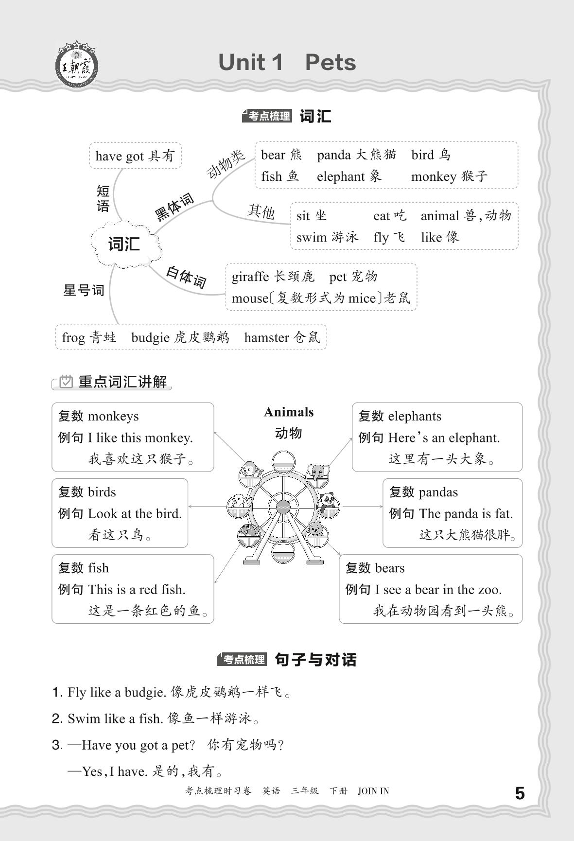 2024春下册三年级英语剑桥版 考点梳理手册——Unit 1 Pets