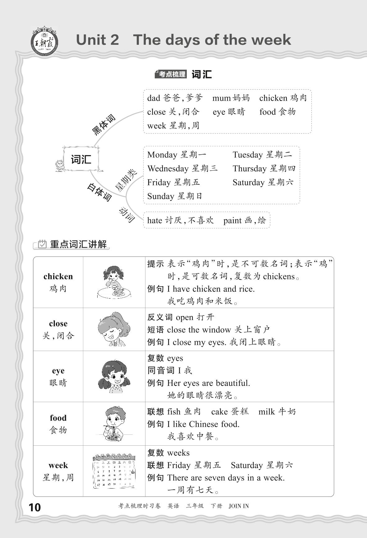 2024春下册三年级英语剑桥版 考点梳理手册——Unit 2 The days of the week