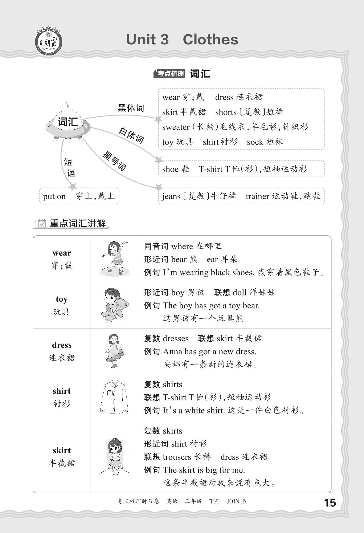 2024春下册三年级英语剑桥版 考点梳理手册——Unit 3 Clothes