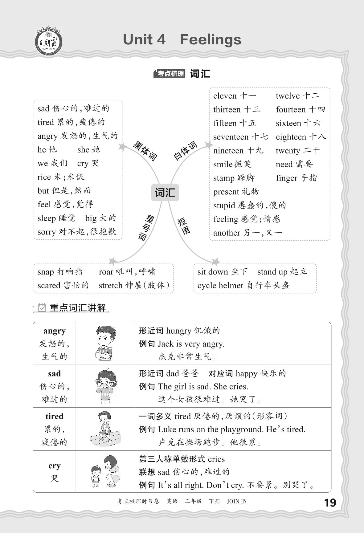 2024春下册三年级英语剑桥版 考点梳理手册——Unit 4 Feelings