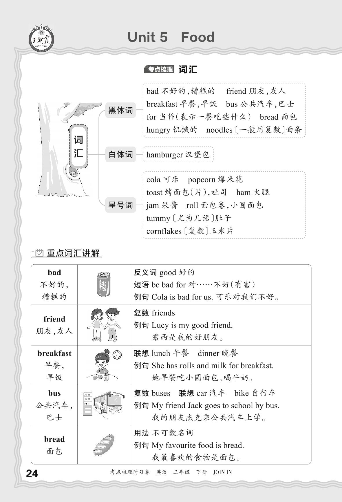 2024春下册三年级英语剑桥版 考点梳理手册——Unit 5 Food
