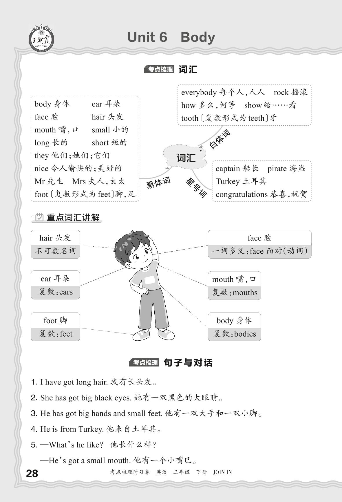 2024春下册三年级英语剑桥版 考点梳理手册——Unit 6 Body