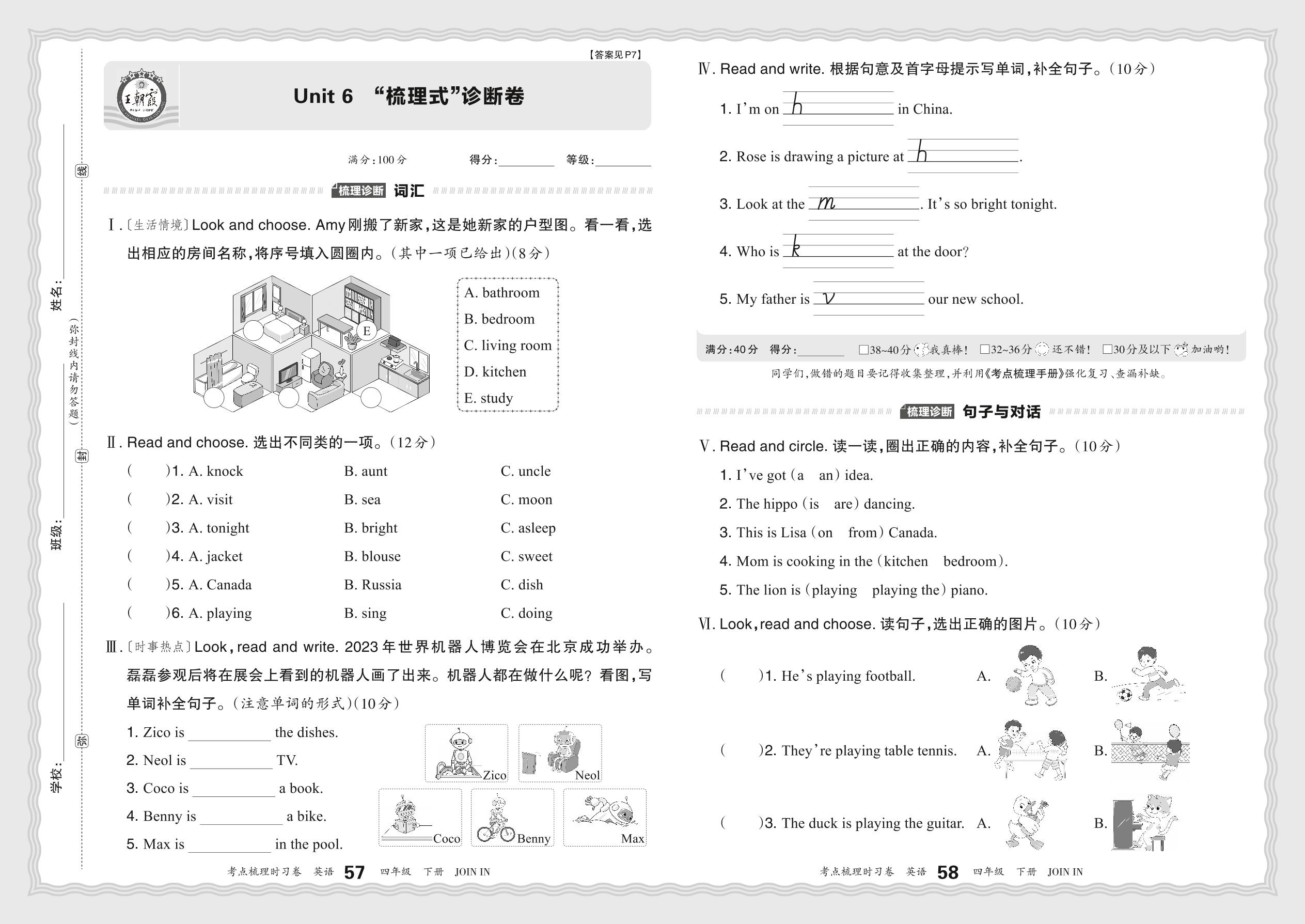 2024春下册四年级英语剑桥版 Unit 6 “梳理式”诊断卷