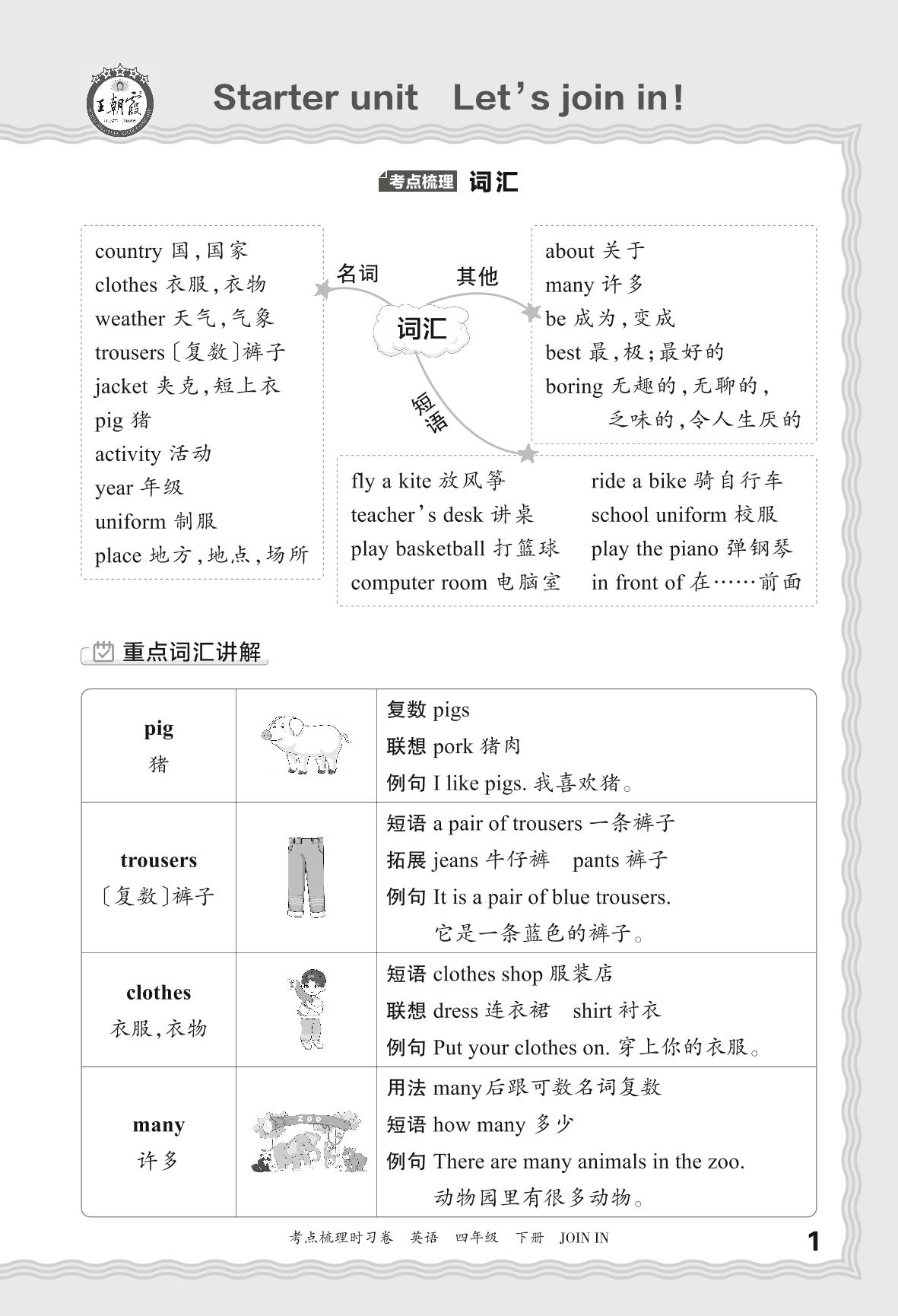 2024春下册四年级英语剑桥版 考点梳理手册——Starter unit Let’s join in!