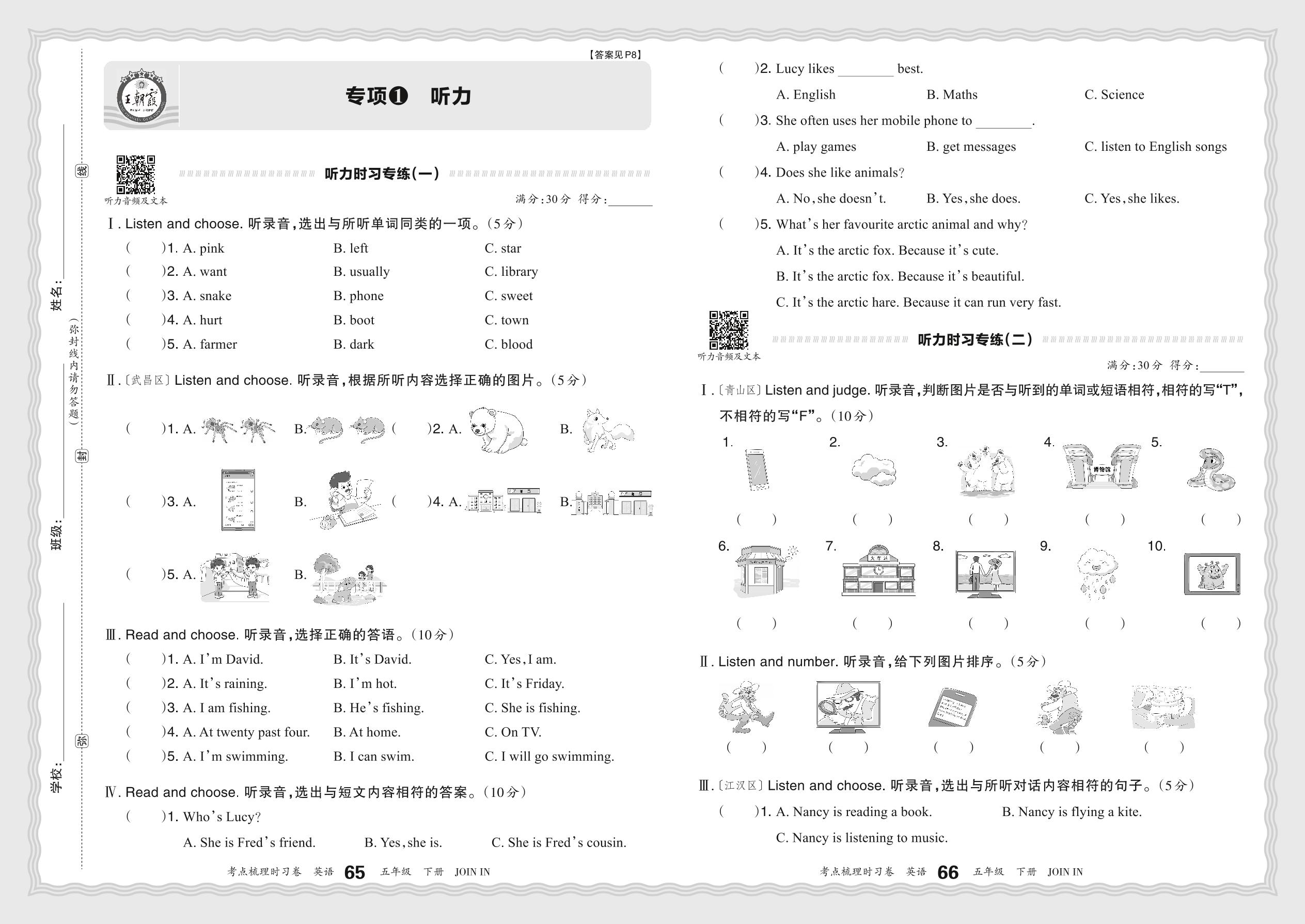 2024春下册五年级英语剑桥版 期末专项卷KD版·听力【1】