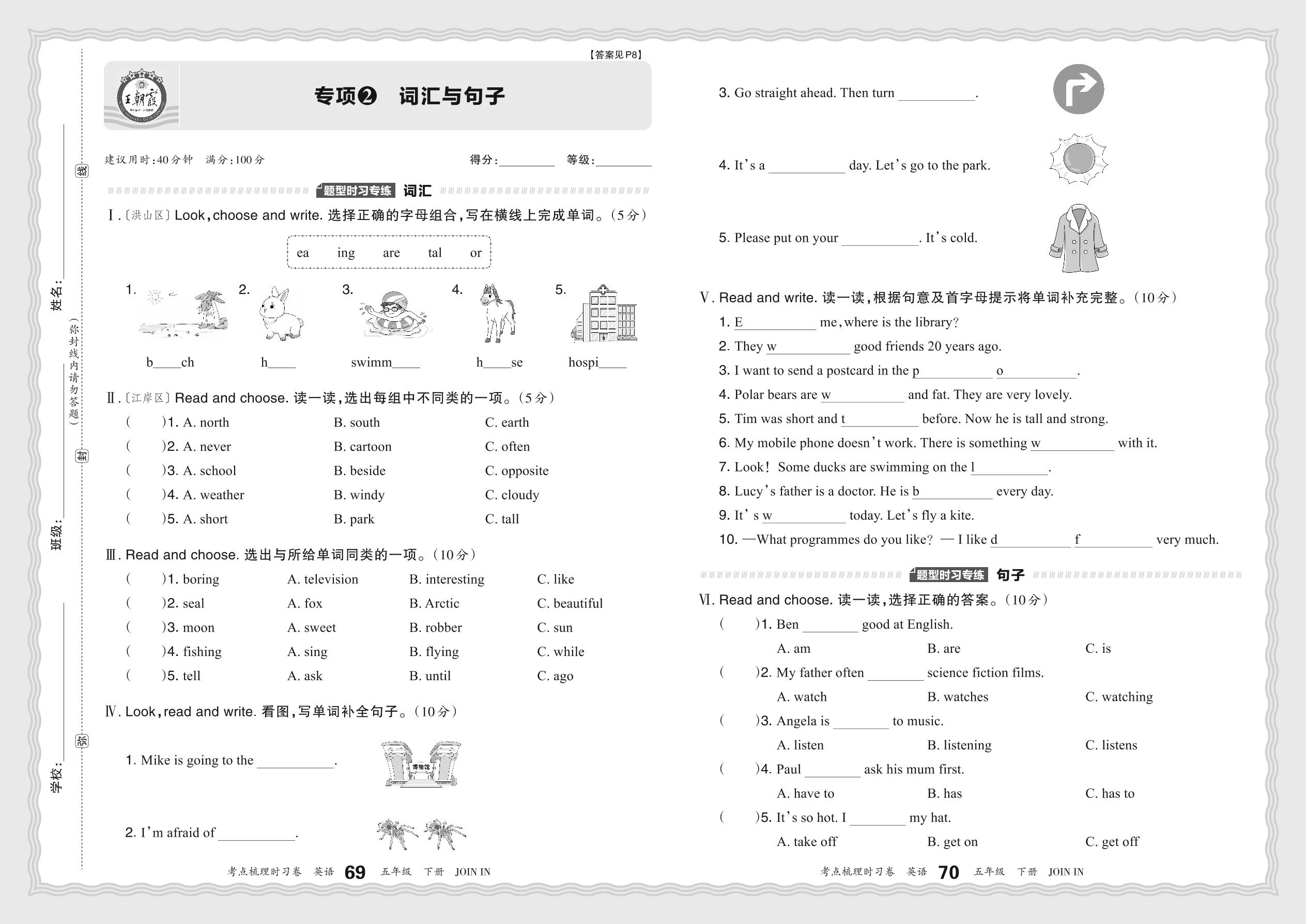 2024春下册五年级英语剑桥版 期末专项卷KD版·词汇与句子【2】