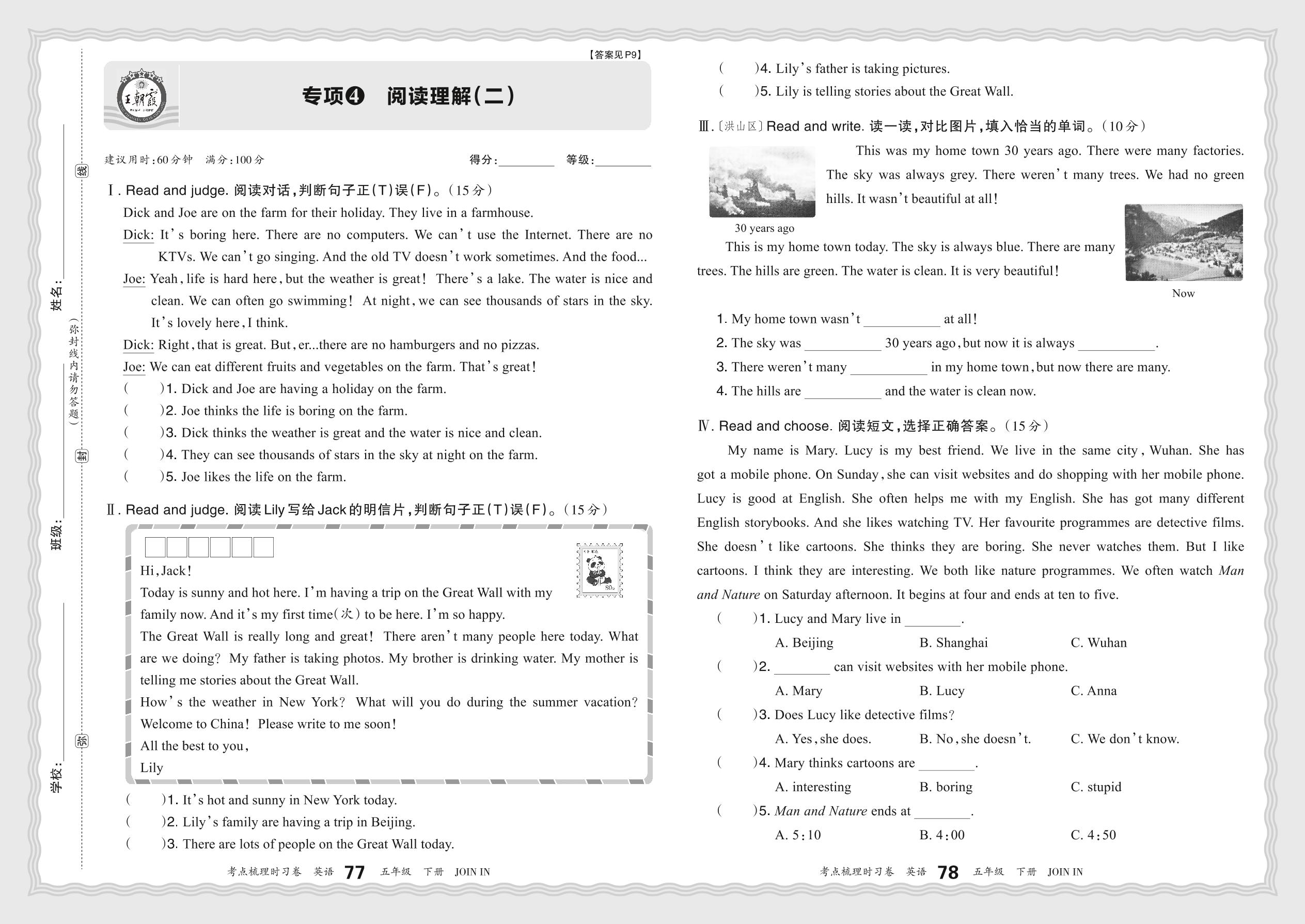 2024春下册五年级英语剑桥版 期末专项卷KD版·阅读理解(二)【4】