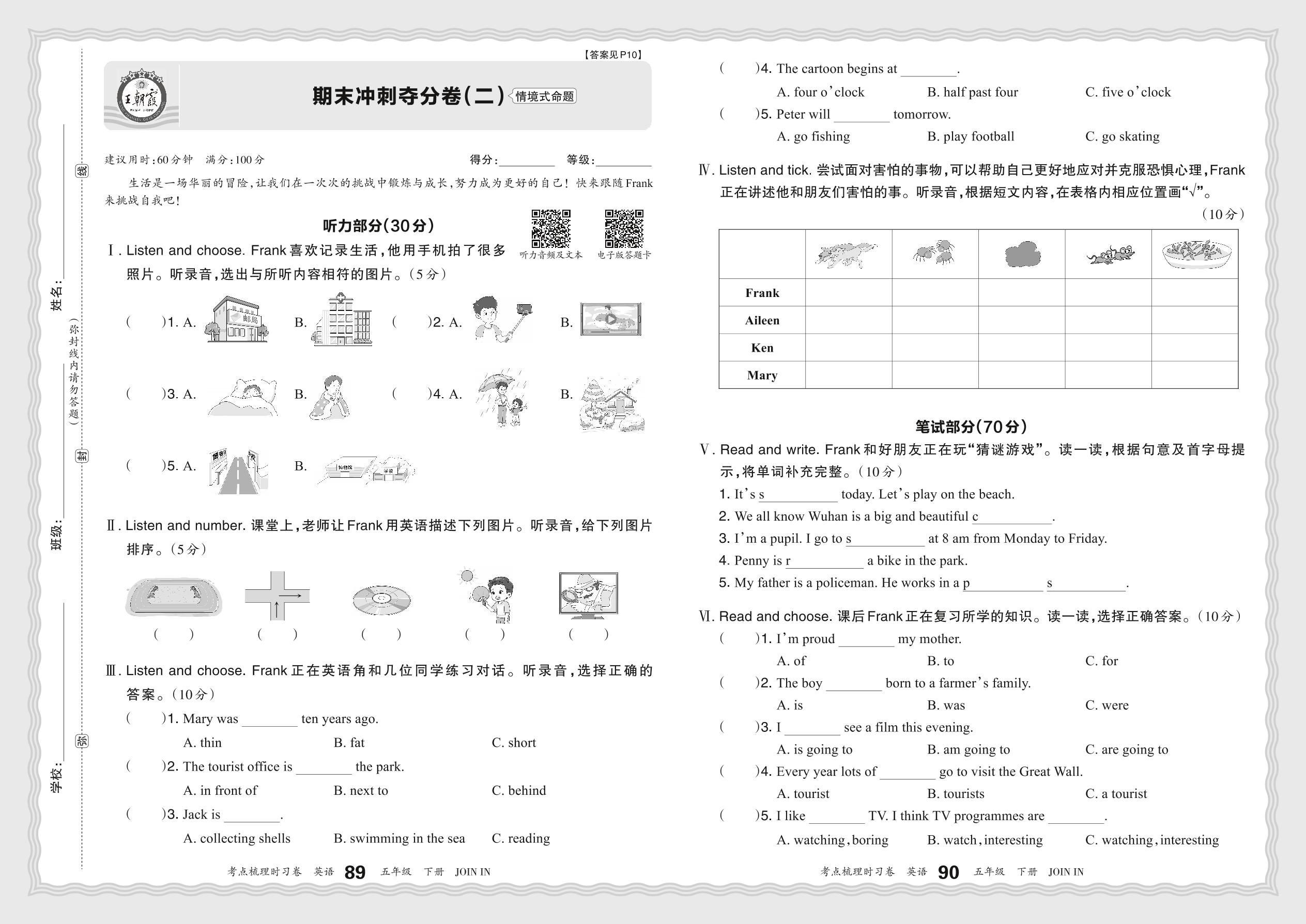 2024春下册五年级英语剑桥版 期末冲刺夺分卷(二)