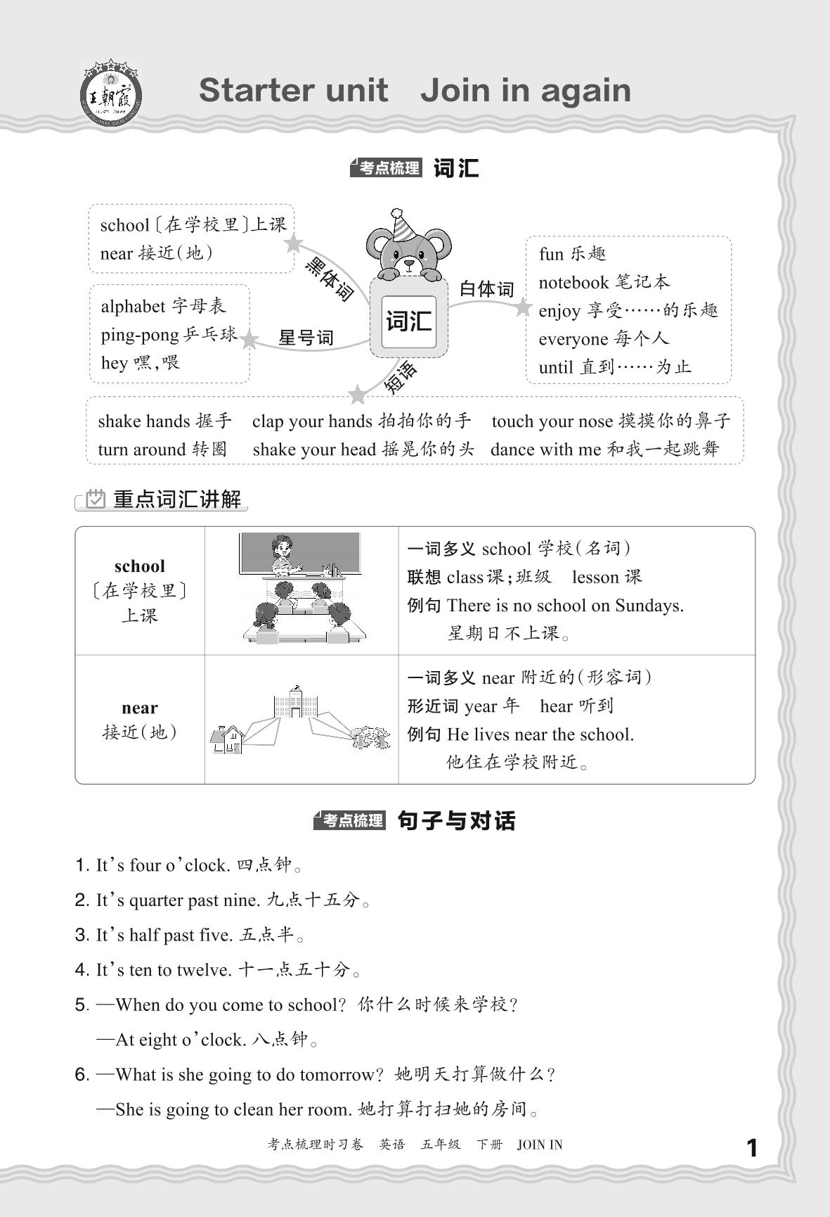2024春下册五年级英语剑桥版 考点梳理手册——Starter unit Join in again