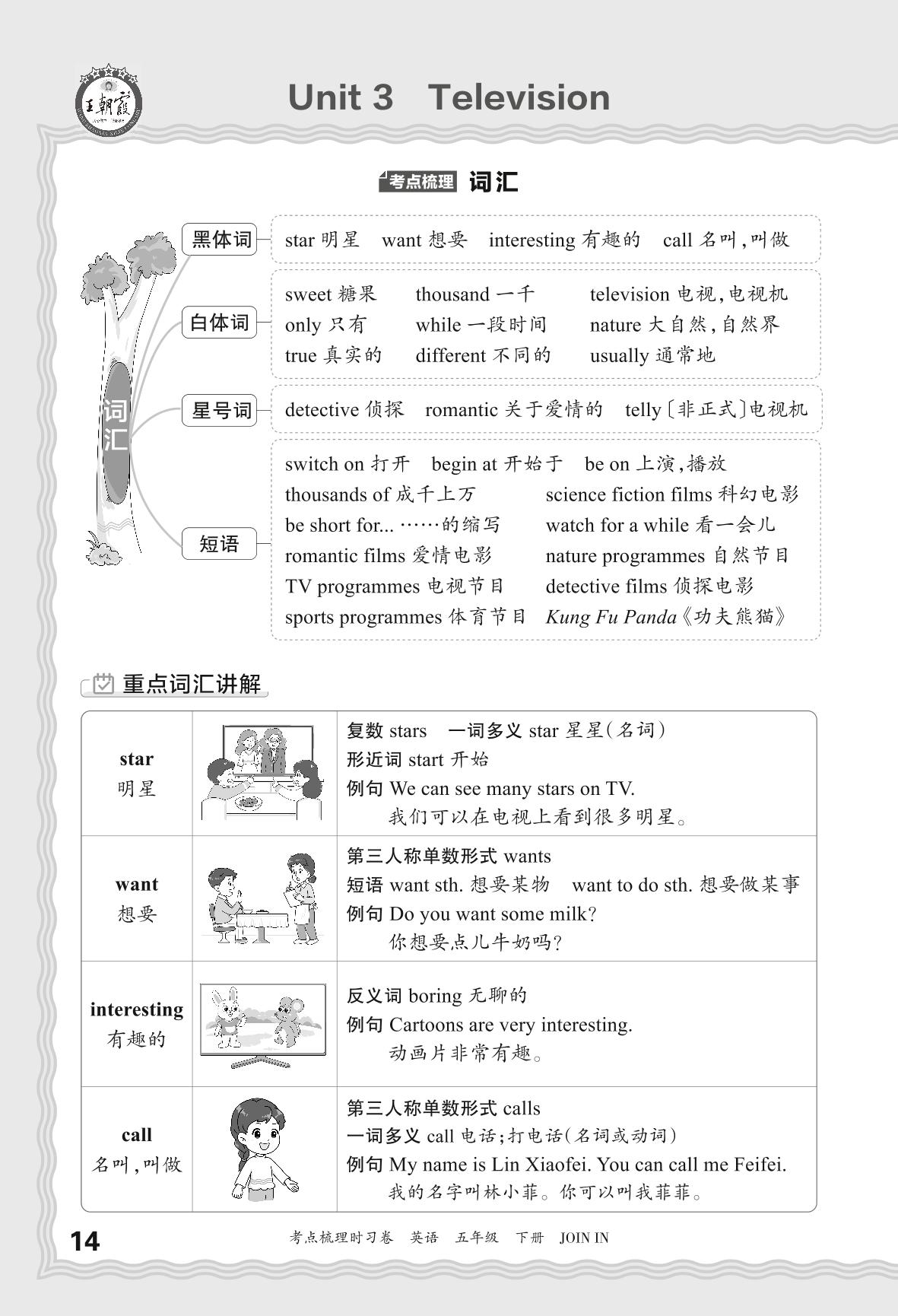 2024春下册五年级英语剑桥版 考点梳理手册——Unit 3 Television
