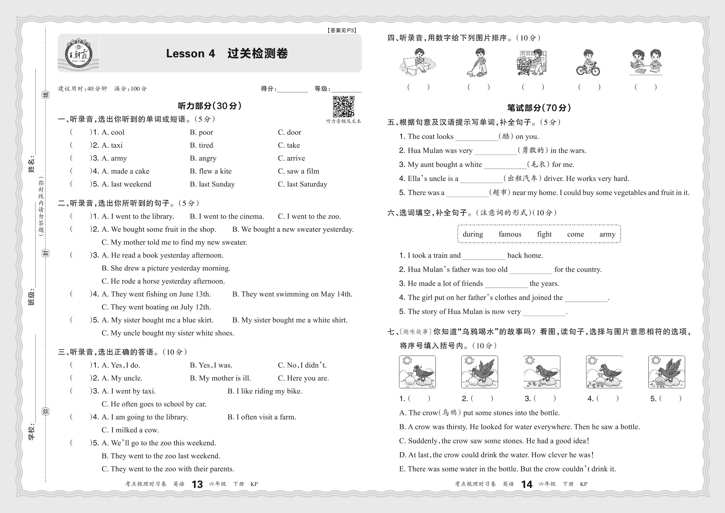 2024春下册六年级英语科普版 Lesson 4 过关检测卷