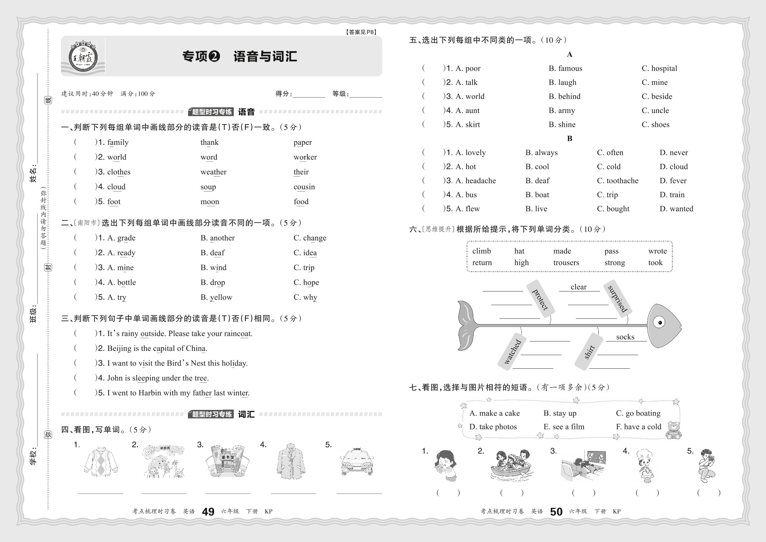 2024春下册六年级英语科普版 期末专项卷KD版·语音与词汇【2】
