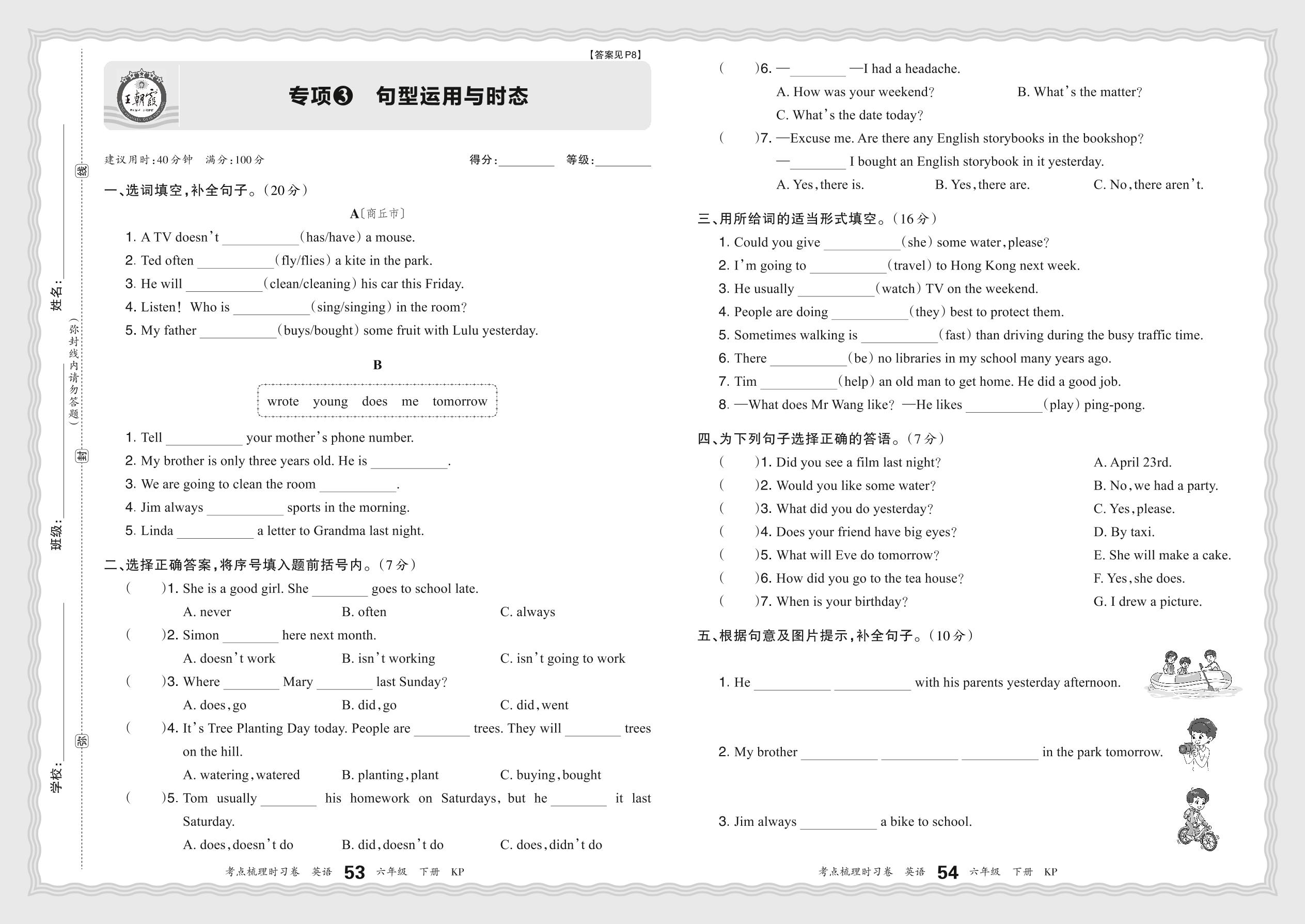 2024春下册六年级英语科普版 期末专项卷KD版·句型运用与时态【3】
