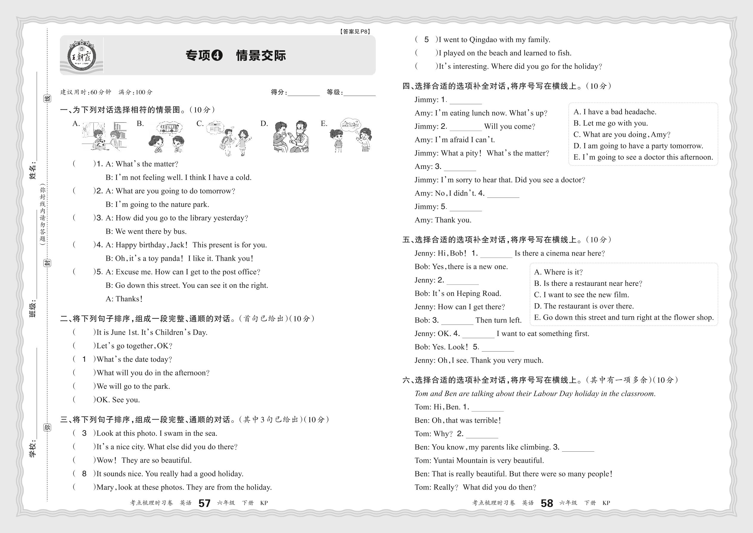 2024春下册六年级英语科普版 期末专项卷KD版·情景交际【4】