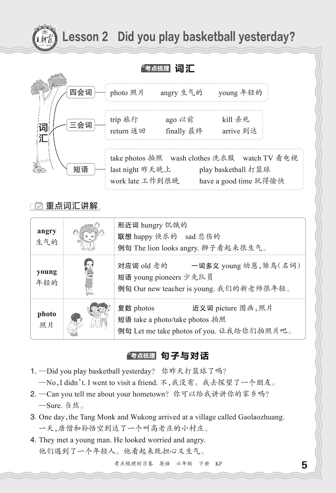 2024春下册六年级英语科普版 考点梳理手册——Lesson 2 Did you play basketball yesterday
