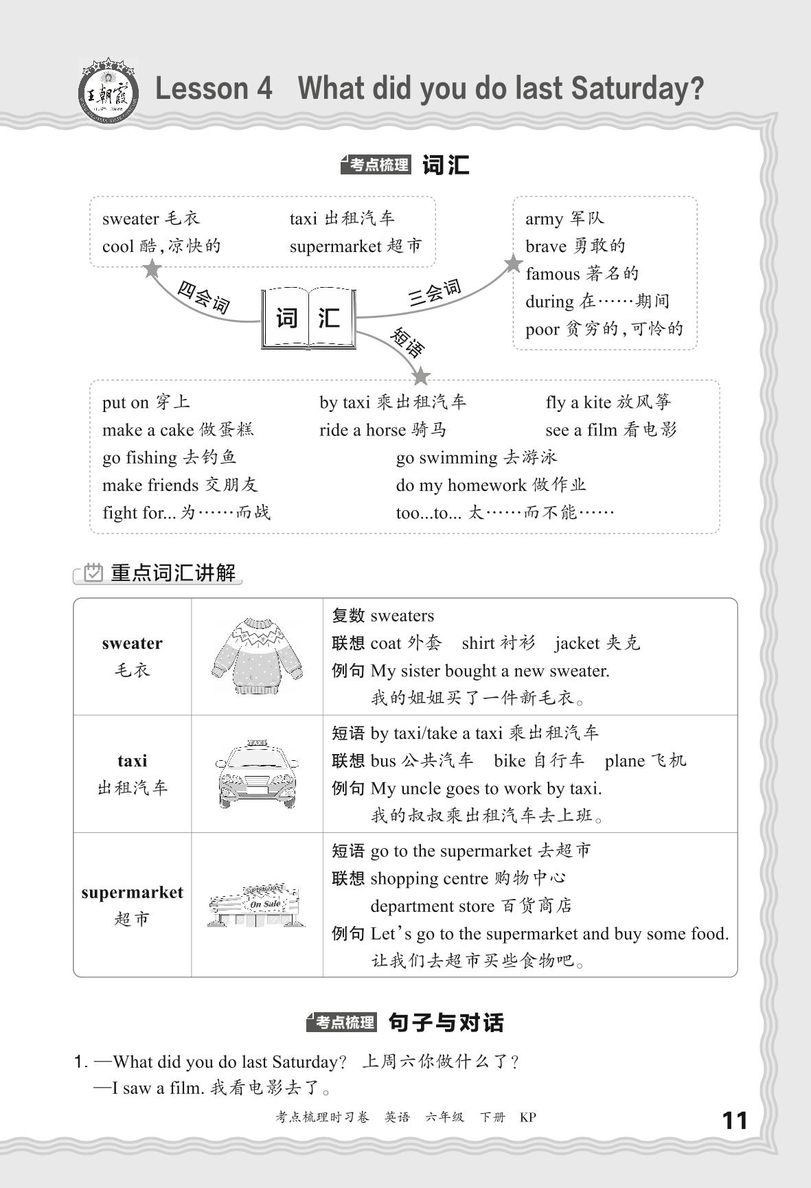 2024春下册六年级英语科普版 考点梳理手册——Lesson 4 What did you do last Saturday?