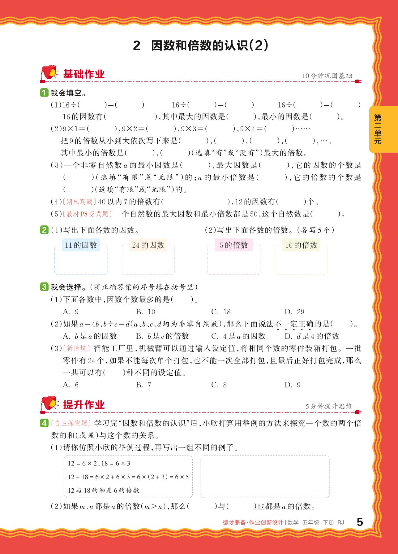 2024春下册五年级数学人教版 第二单元 因数和倍数——2. 因数和倍数的认识(2)