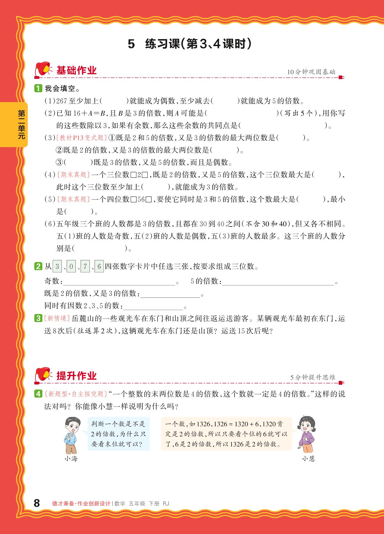 2024春下册五年级数学人教版 第二单元 因数和倍数——2、5、3的倍数练习课