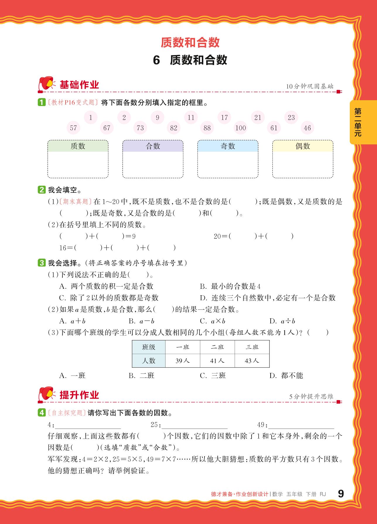 2024春下册五年级数学人教版 第二单元 因数和倍数——6. 质数和合数