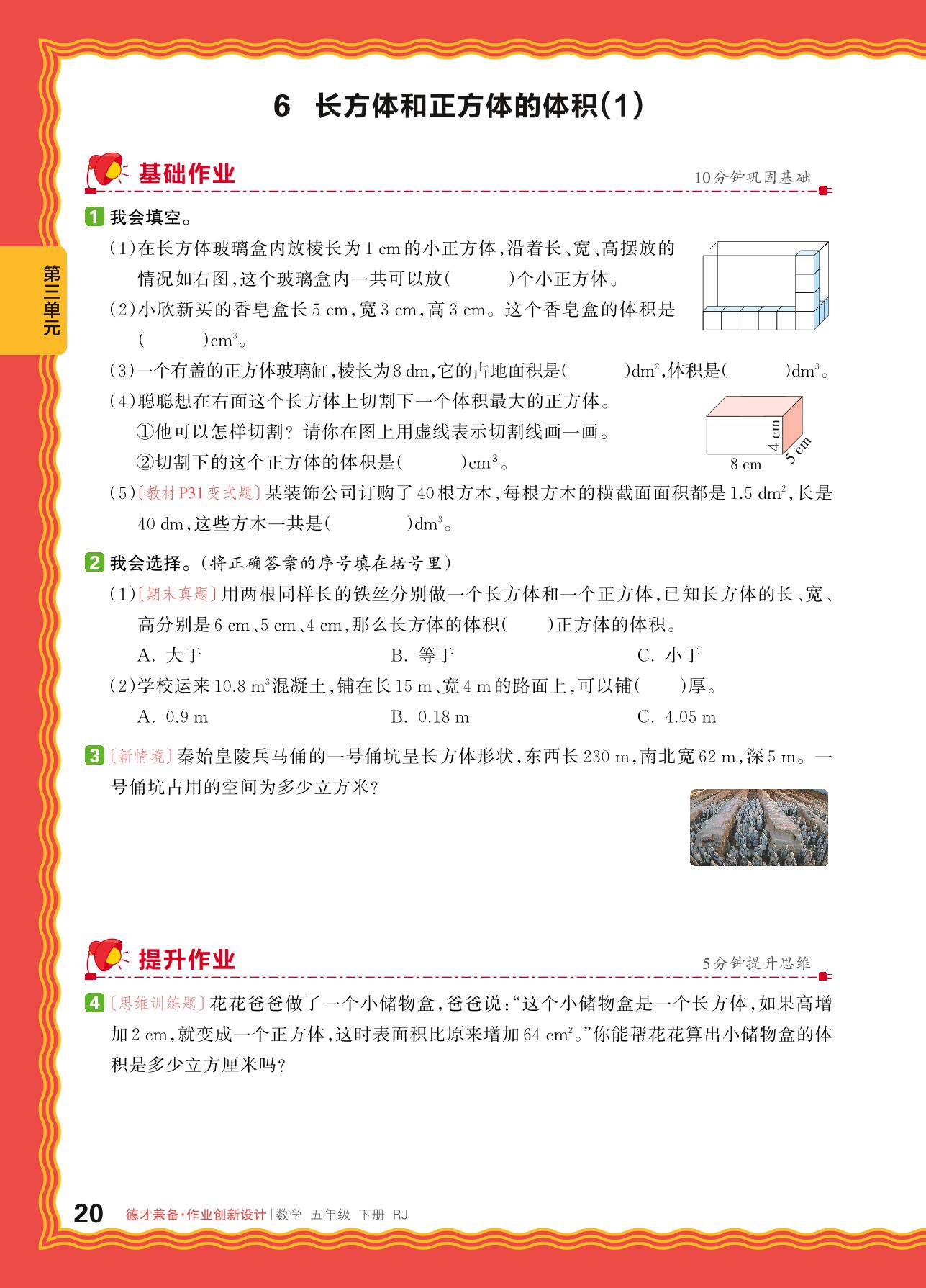 2024春下册五年级数学人教版 第三单元 长方体和正方体——6. 长方体和正方体的体积(1)